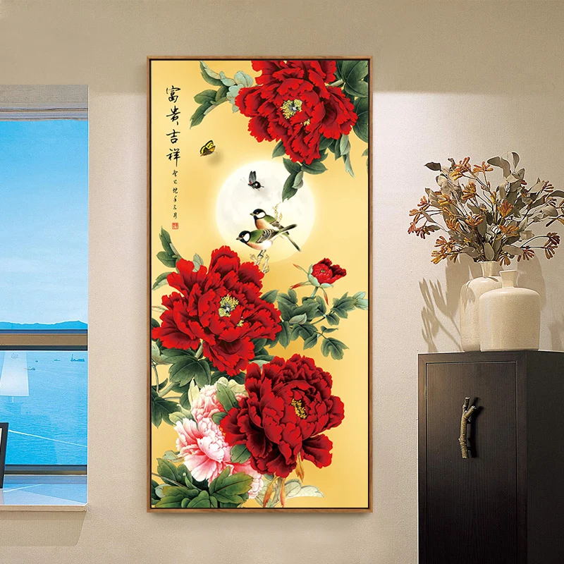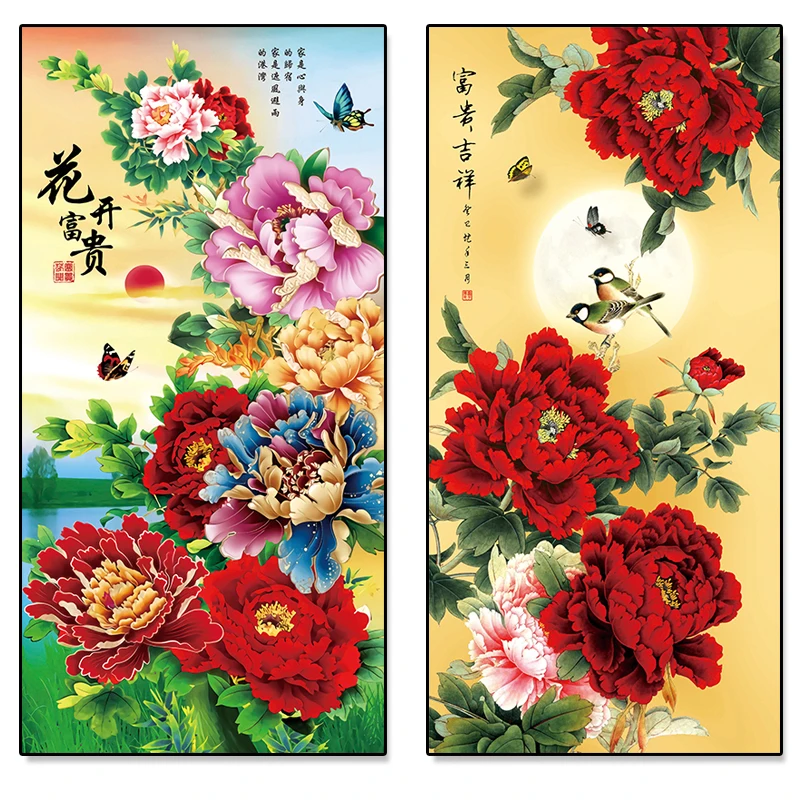 Набор для вышивки крестиком, с принтом пионов, 11 карат