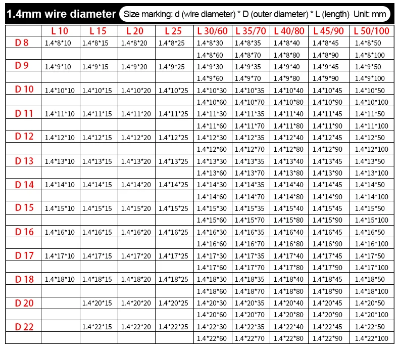 1,4 мм диаметр провода(Маркировка размеров: d (диаметр провода) * D (внешний диаметр) * L (длина))