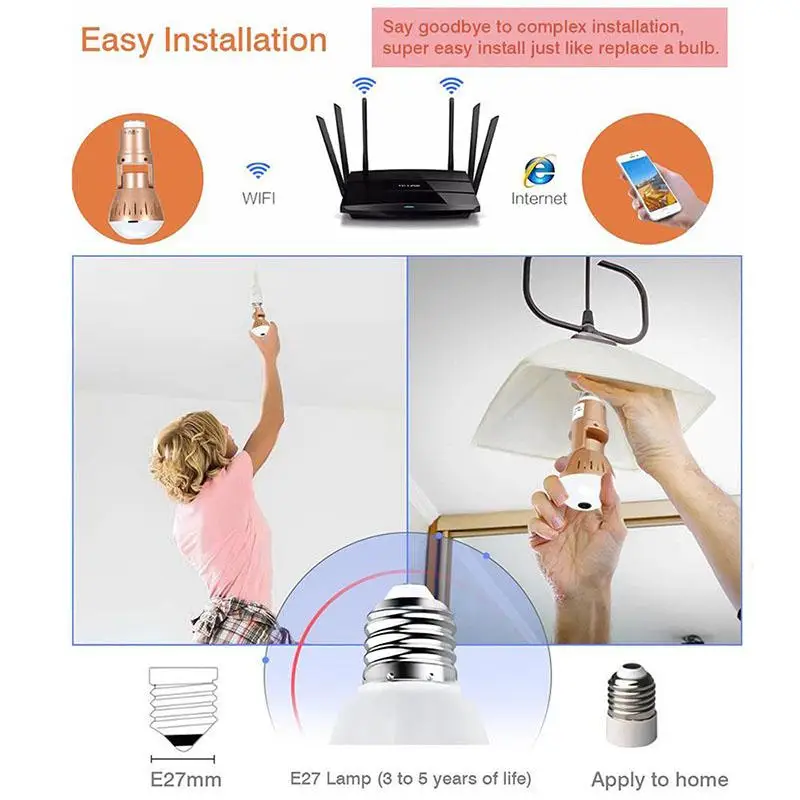 Панорамная IP-камера 1080P HD 360 с Wi-Fi и лампочкой