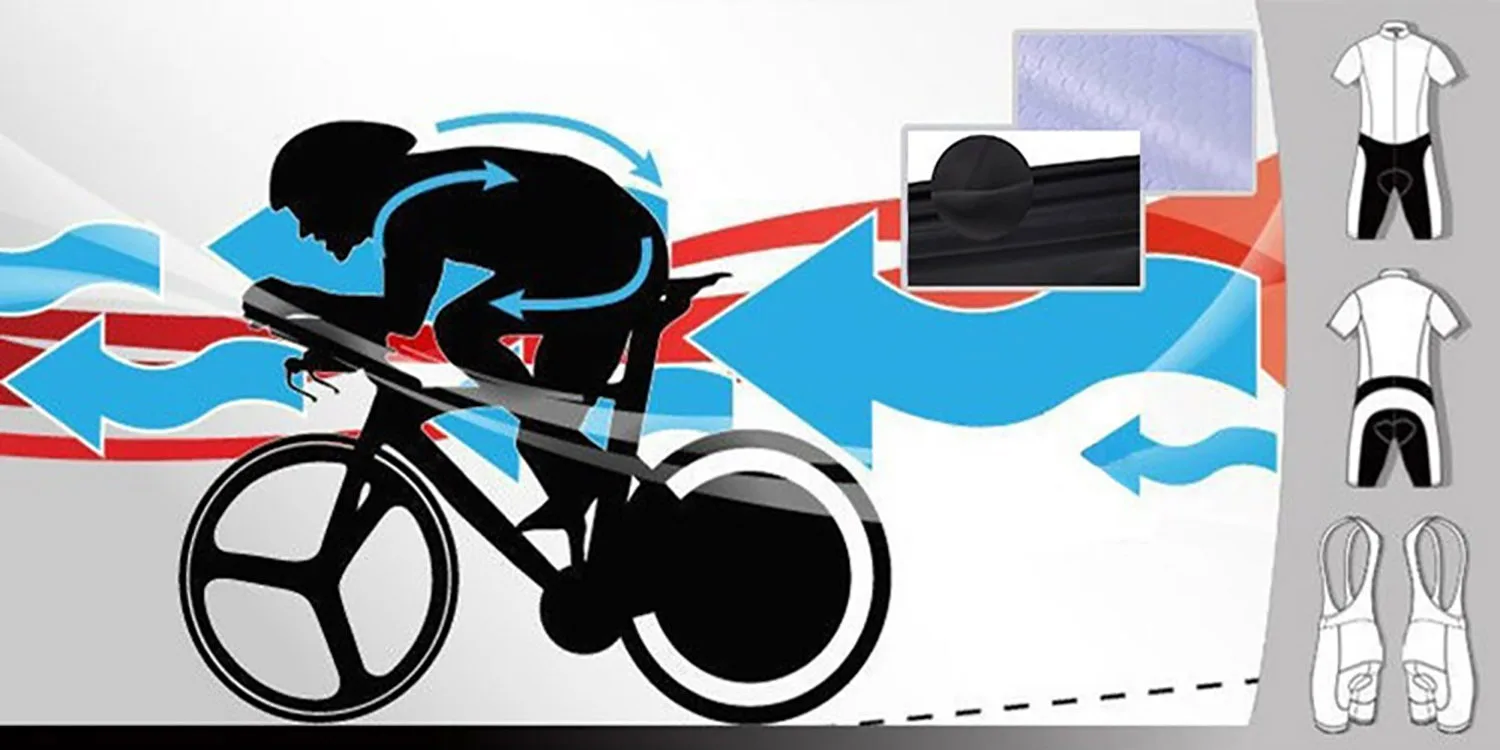 What are the attributes of this cycling jersey?UV Resistant, Quick Dry, Sweat-Wicking, Breathable, Back Pocket