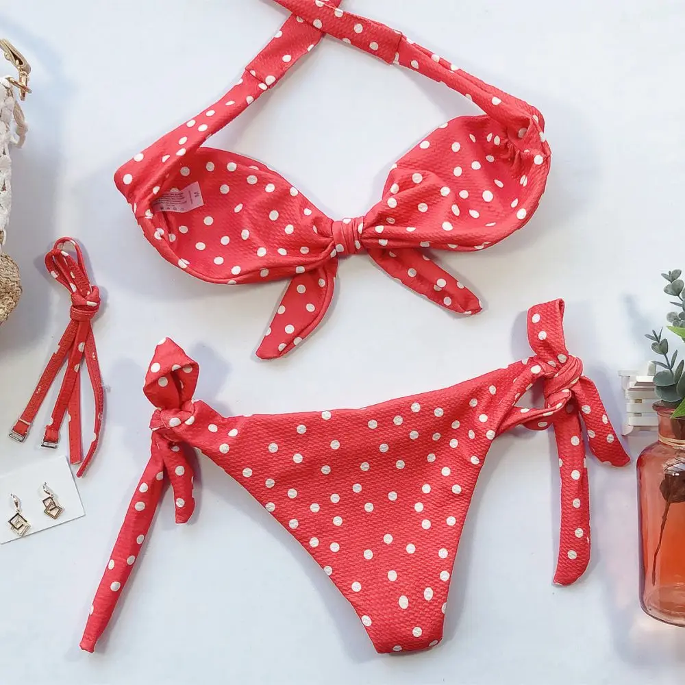 Бикини бандо, сексуальный купальник в горошек, женский купальник пу...