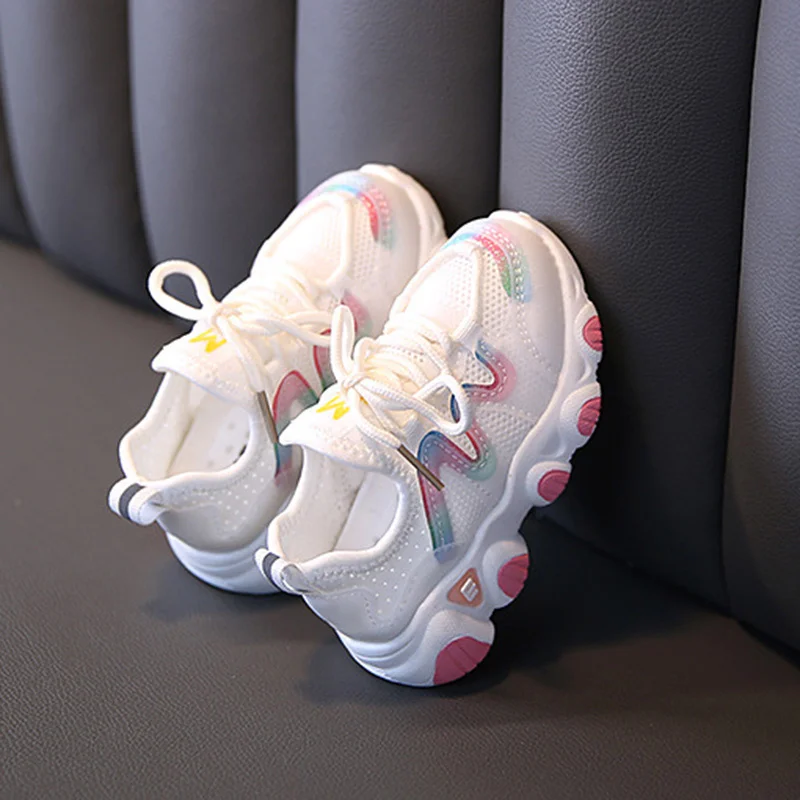 Детская Повседневная Спортивная обувь для девочек, модная сетчатая обувь унисекс, подростковые детские кроссовки для бега, обувь для мальчиков и девочек зеленого, розового, белого цветов