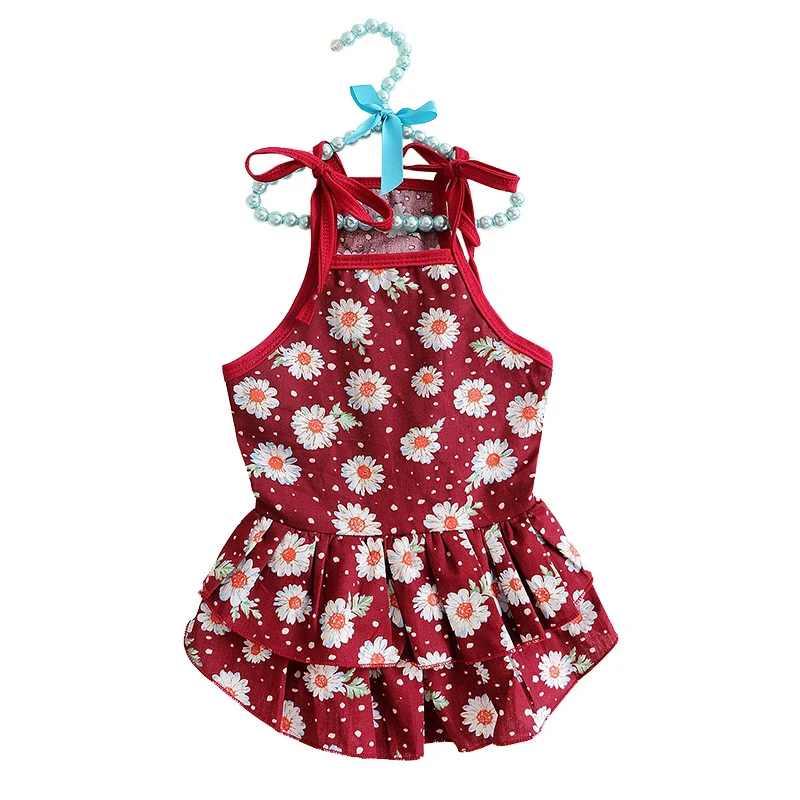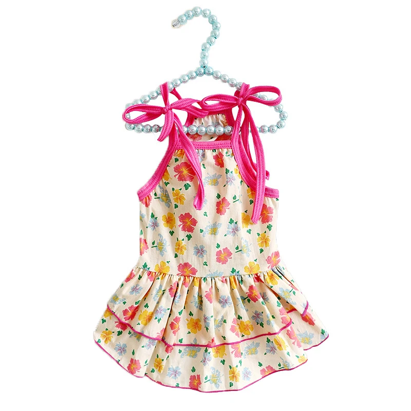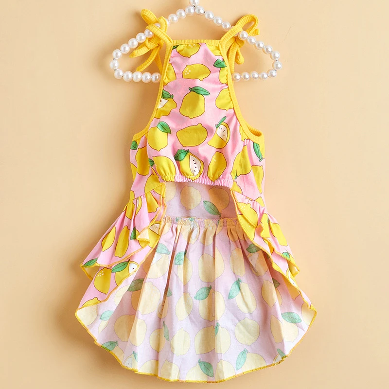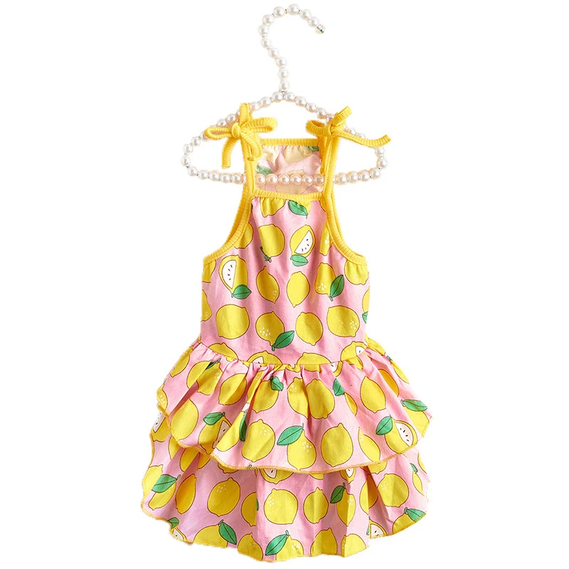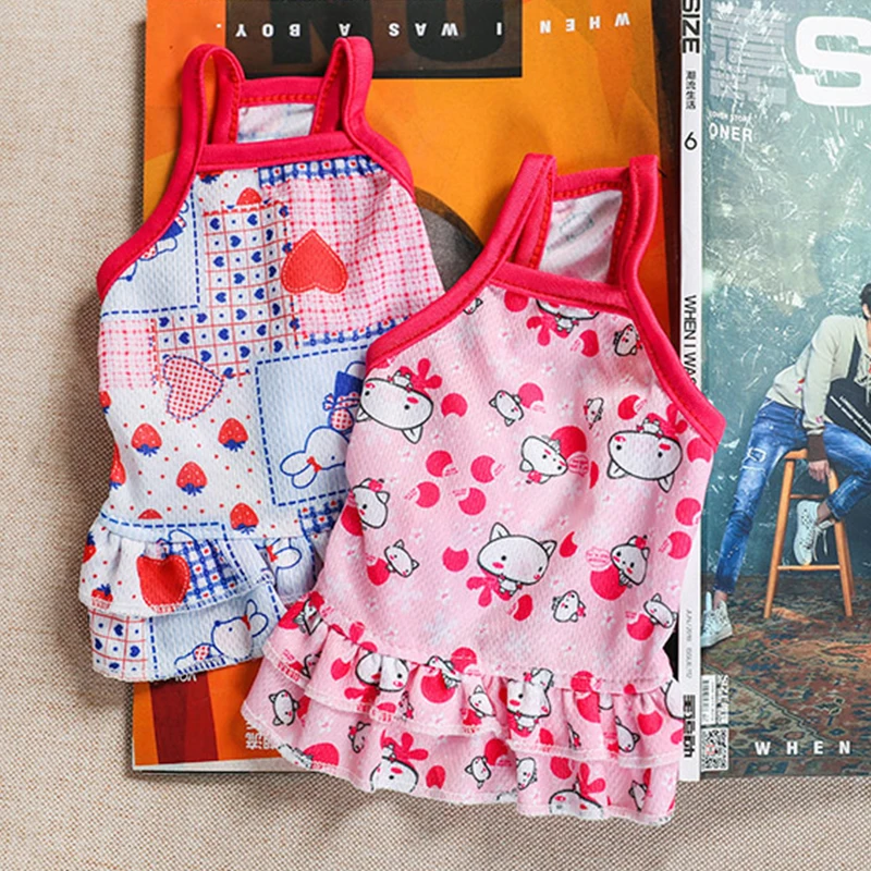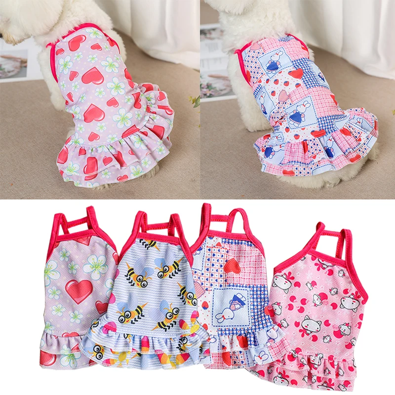 Летняя юбка для домашних животных, кружевной жилет для собак, мультяшный принт, платье для домашних животных, крутая одежда для щенков, маленьких кошек, милое платье на бретельках, товары для домашних животных