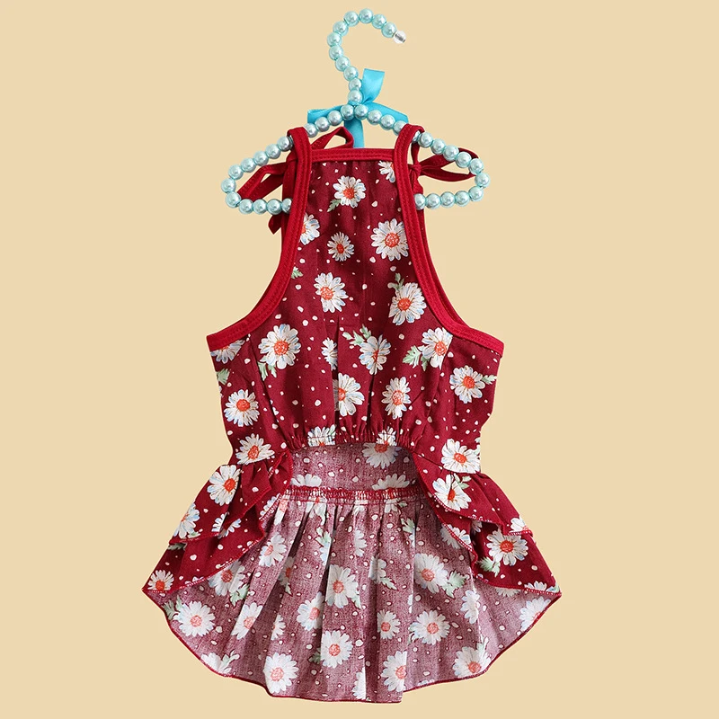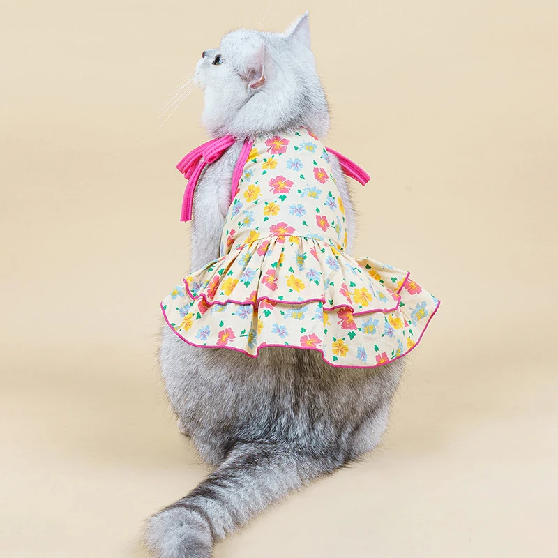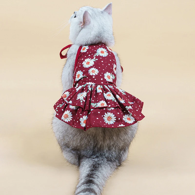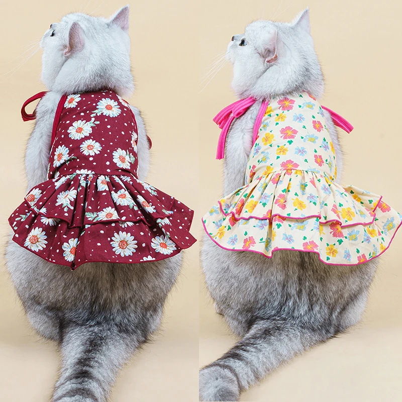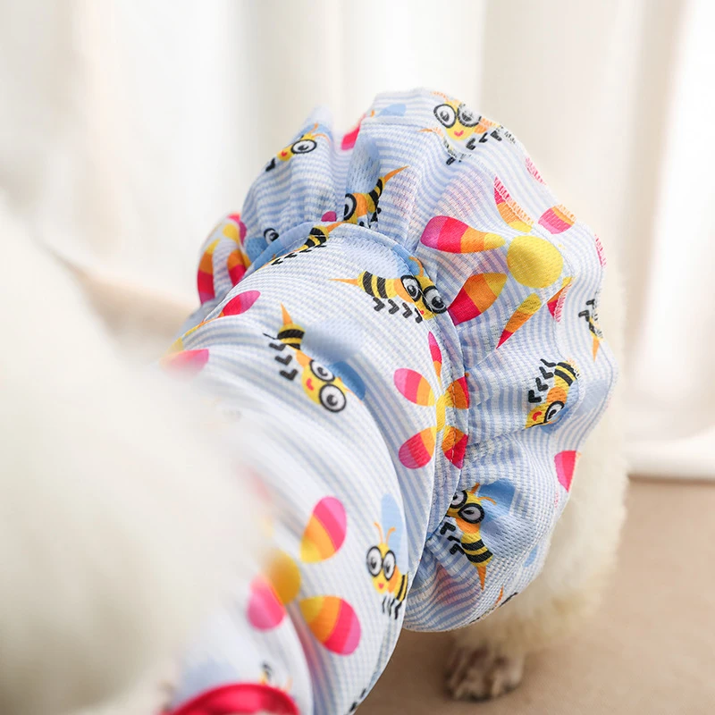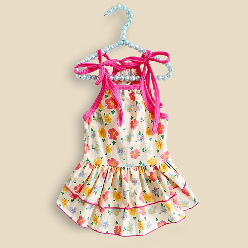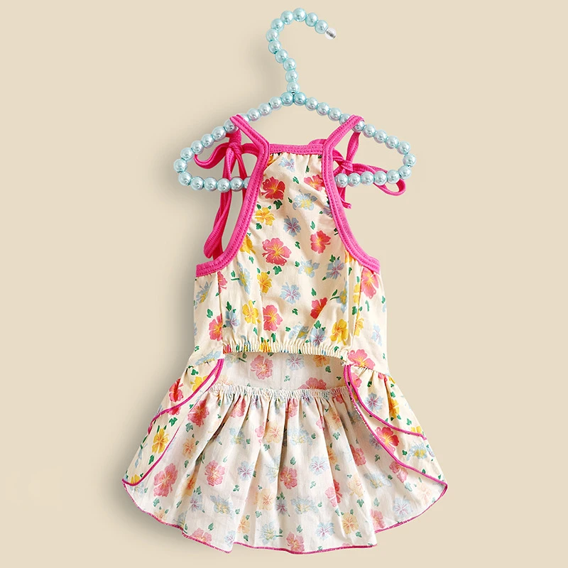 Летняя юбка для домашних животных, кружевной жилет для собак, мультяшный принт, платье для домашних животных, крутая одежда для щенков, маленьких кошек, милое платье на бретельках, товары для домашних животных
