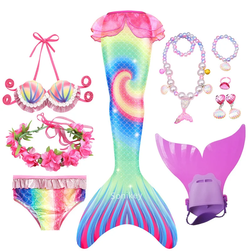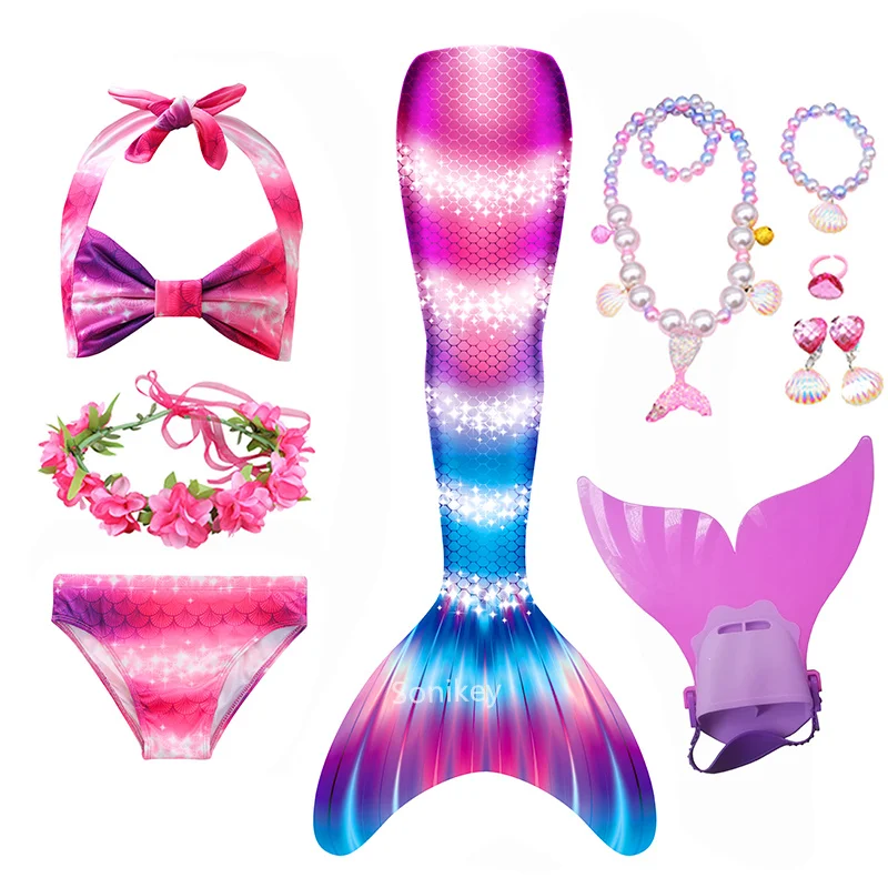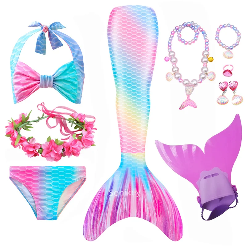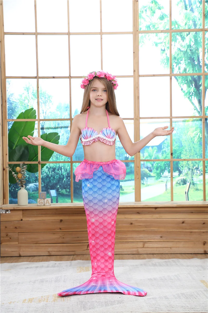 Костюм Русалки для девочек, Детский костюм русалки, косплей, платье Русалочки, Хэллоуин, вечерние на день рождения, Моноласты, хвосты для купания