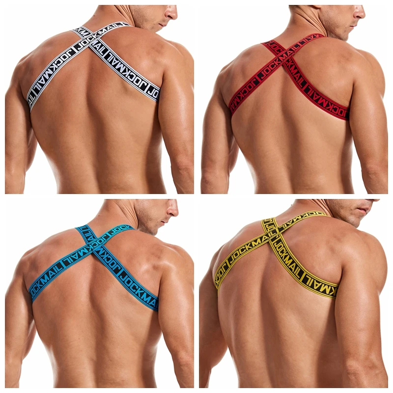 Бандаж JOCKMAIL мужской с надписью, пикантный бандаж на плечи, бандаж для мышц, лямка через шею, клубный костюм с вырезами для вечеринки, боди для геев