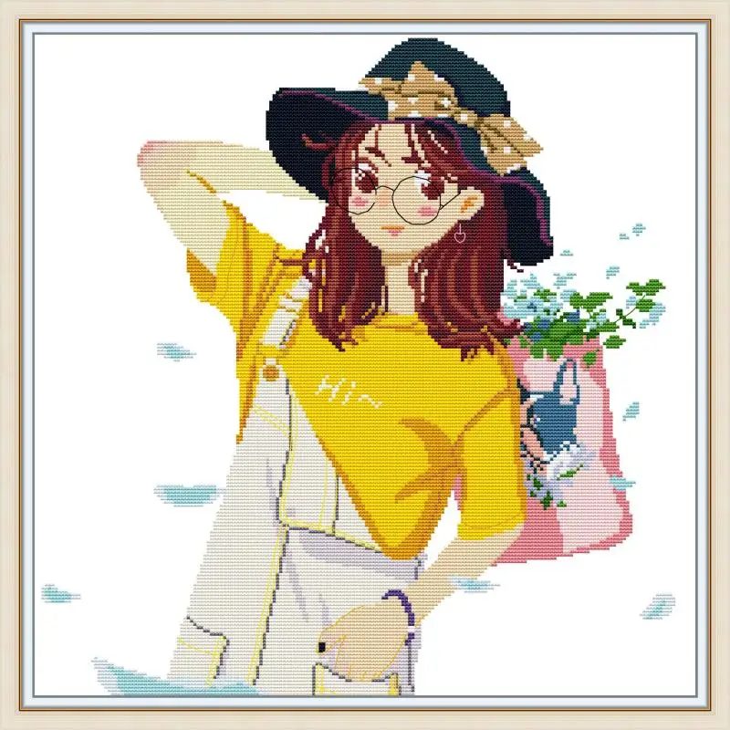 Набор для вышивки крестиком с изображением красивой девушки, 14CT 11CT, Набор для вышивки на холсте, вышивка, картина для украшения дома
