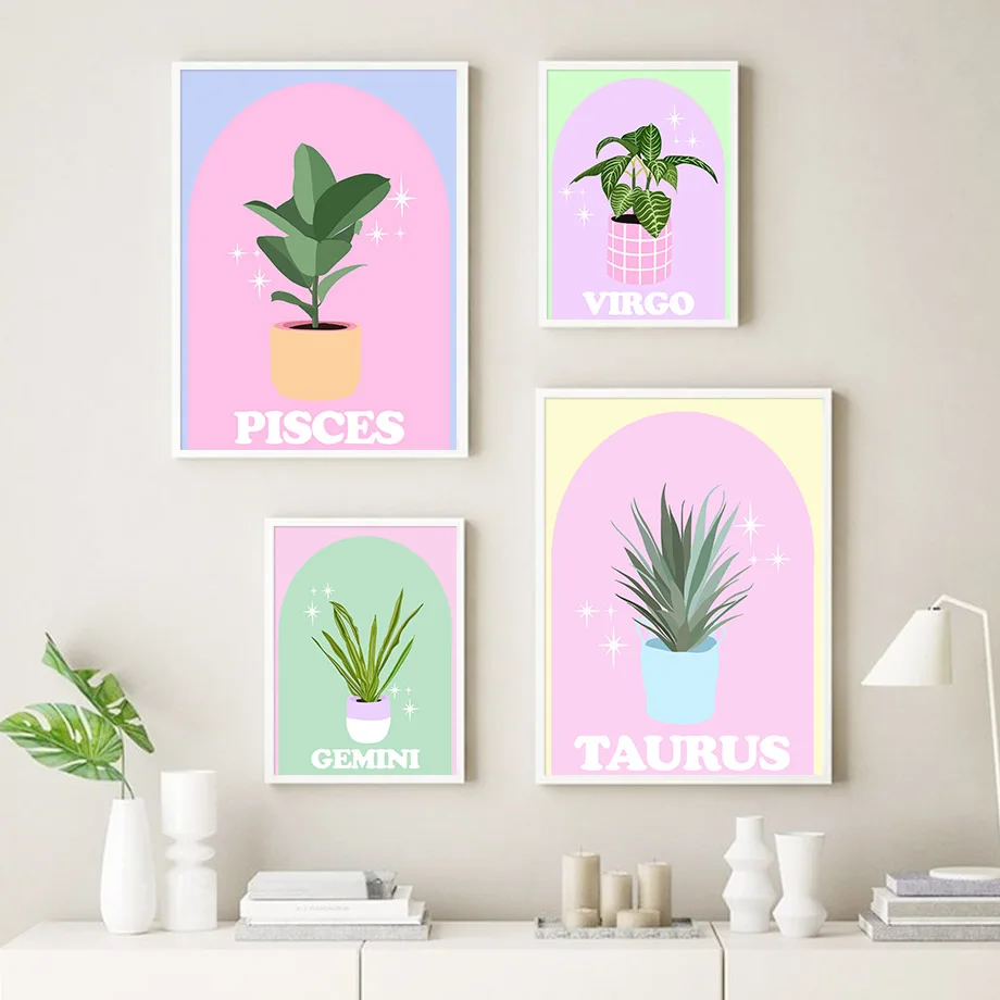 12 знаков зодиака, растения, Скорпион, рак, Лео, настенная Картина на холсте, скандинавские постеры и принты, настенные картины для декора гостиной