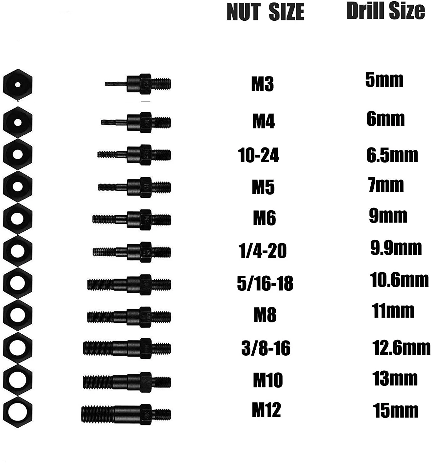 6. Рукоятка из высокопрочной углеродистой стали 3/25 ″(3 мм) делает инструмент для заклепки гайкой более надежным и долговечным. 11 видов сменных оправков отвечают потребностям работы