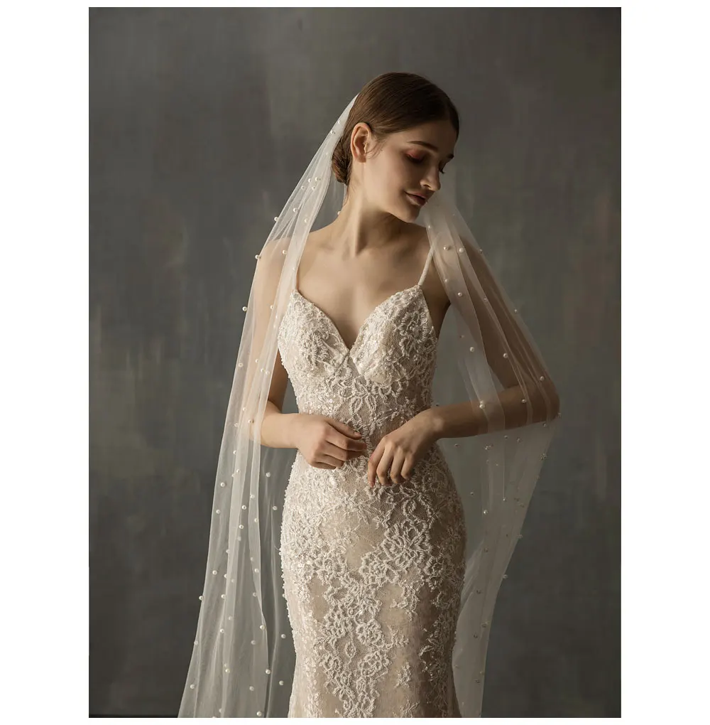 Роскошная Длинная свадебная фата в виде часовни с одним слоем и обрезанными краями, белая, слоновая кость, для свадьбы, V639