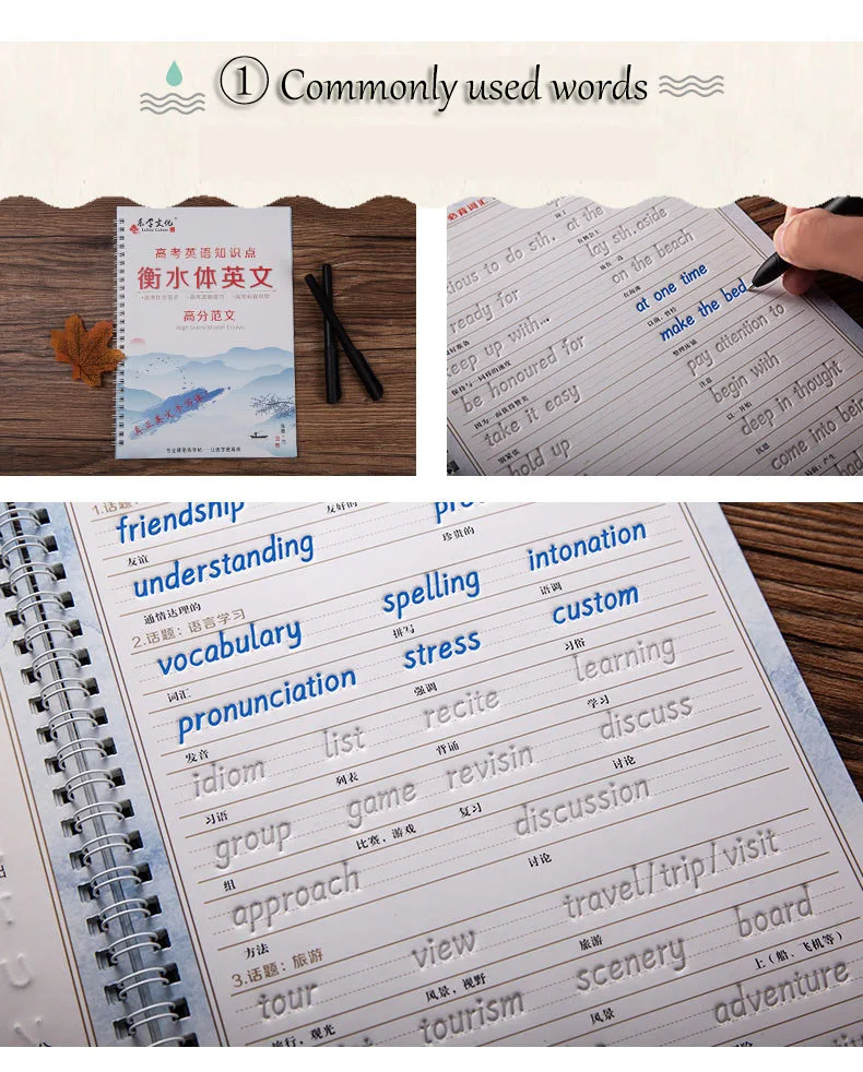 Тетрадь многоразовая на английском языке для изучения каллиграфии, 3 шт.