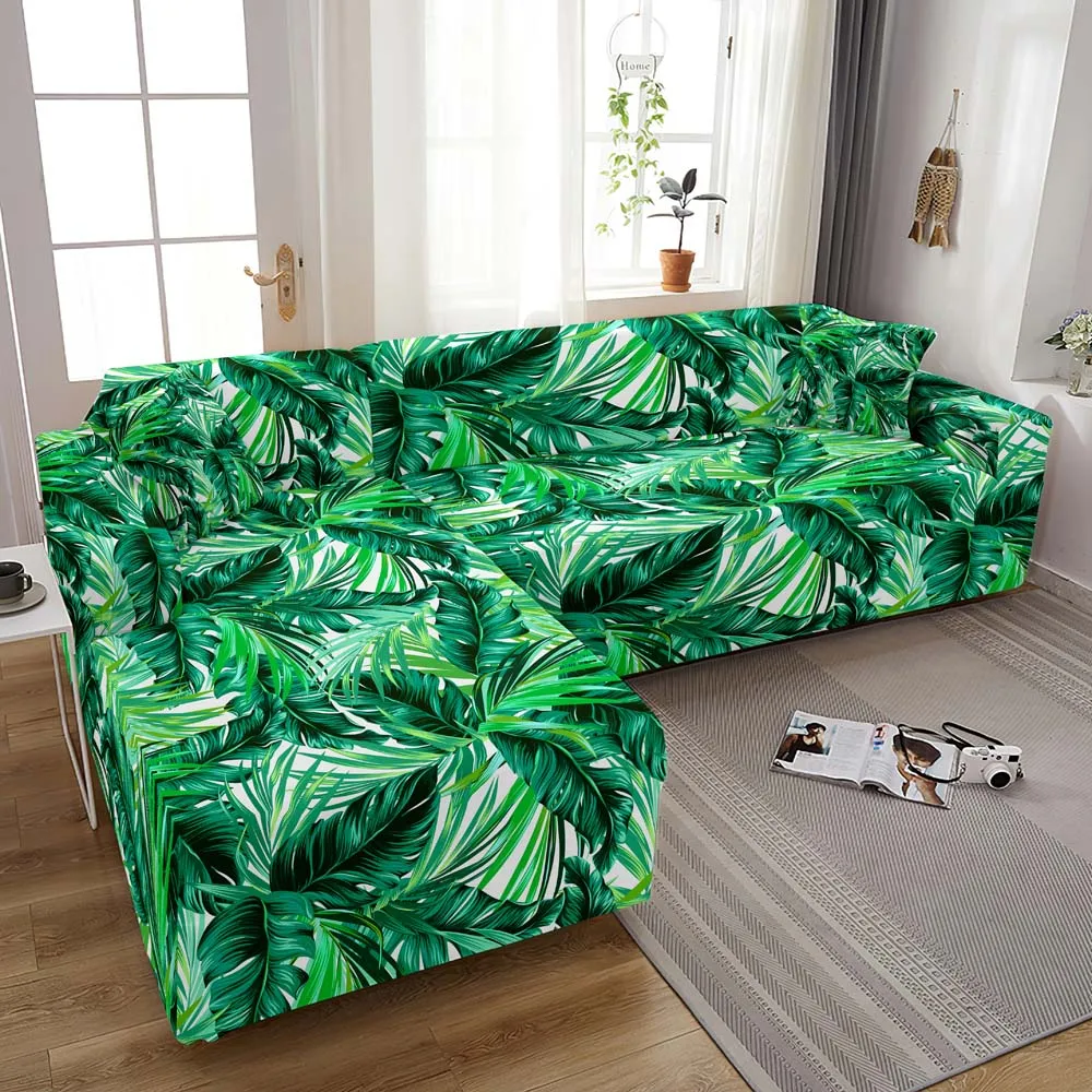 Чехол для дивана эластичный, с принтом листьев, 1234-местный