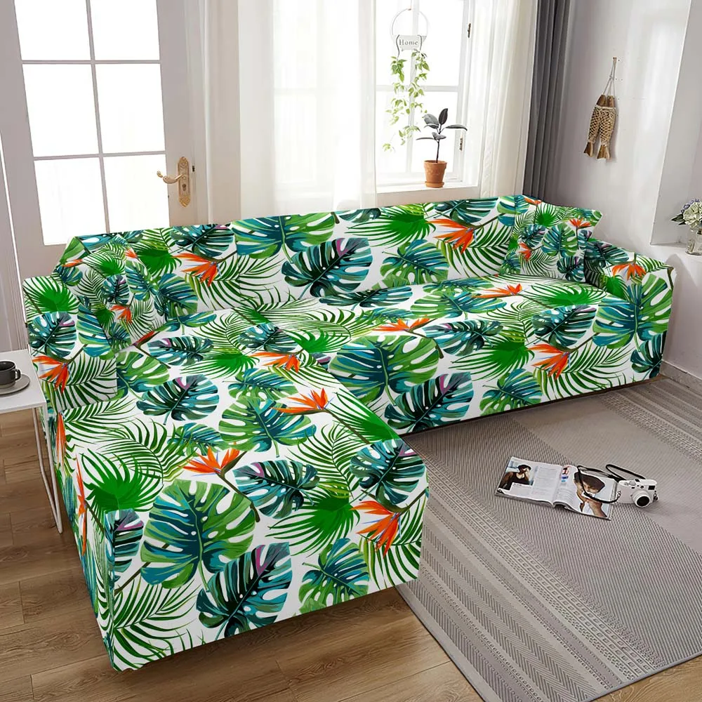 Чехол для дивана с принтом в виде листьев, эластичный чехол для див...