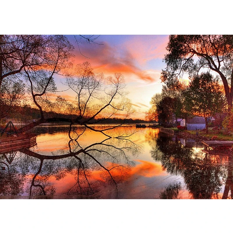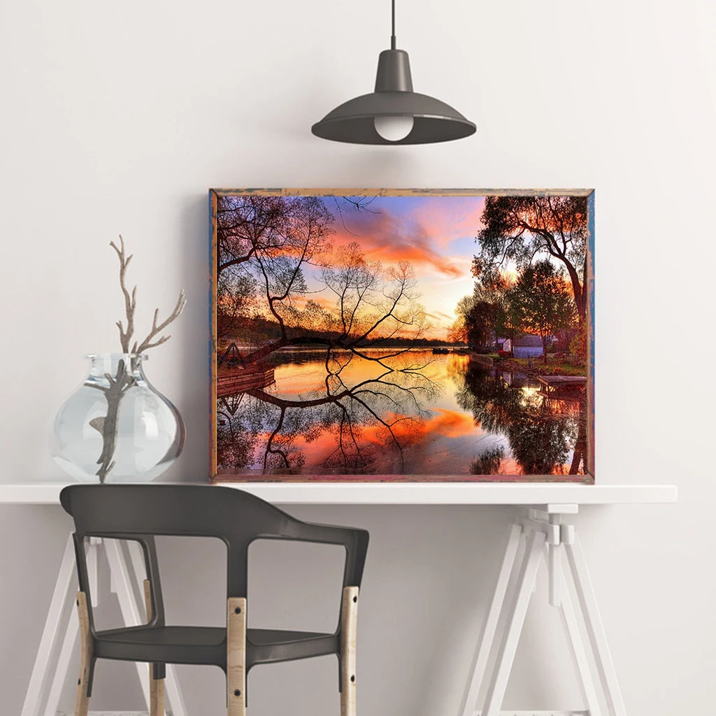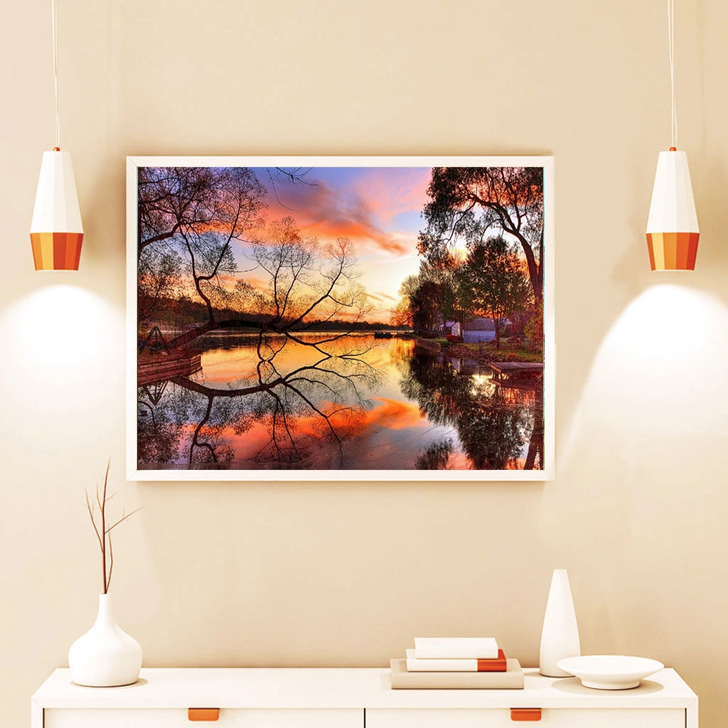 Алмазная 5D картина сделай сам, круглые алмазы, закат, пейзаж, карта ландшафта, вышивка стразами, мозаика, украшение для дома, подарок ручной работы