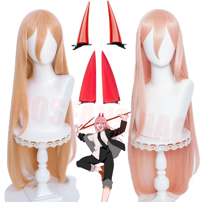 Аниме бензопила человек Сила Косплей парики рога прямые синтетические волосы термостойкие парики Кепка ролевые игры синтетические парики Хэллоуин