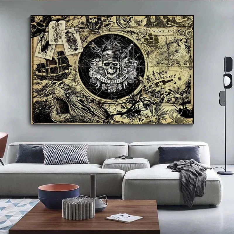 Пиратская Карта Карибского Мао Куна, киноплакаты и принты, Череп, Карта сокровищ, Картина на холсте, настенное искусство, картины, украшение