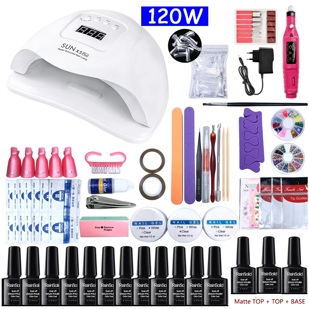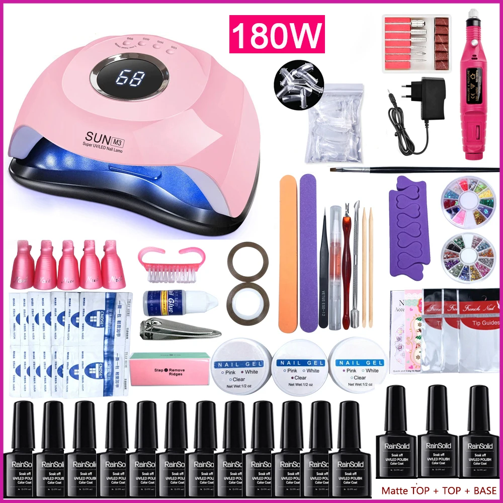 Маникюрный набор Wtih 180 Вт Светодиодный УФ-светильник для маникюра Набор 12 цветов набор гель-лаков для ногтей комплект электрическая дрель для ногтей набор инструментов для дизайна ногтей