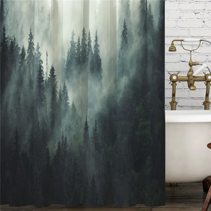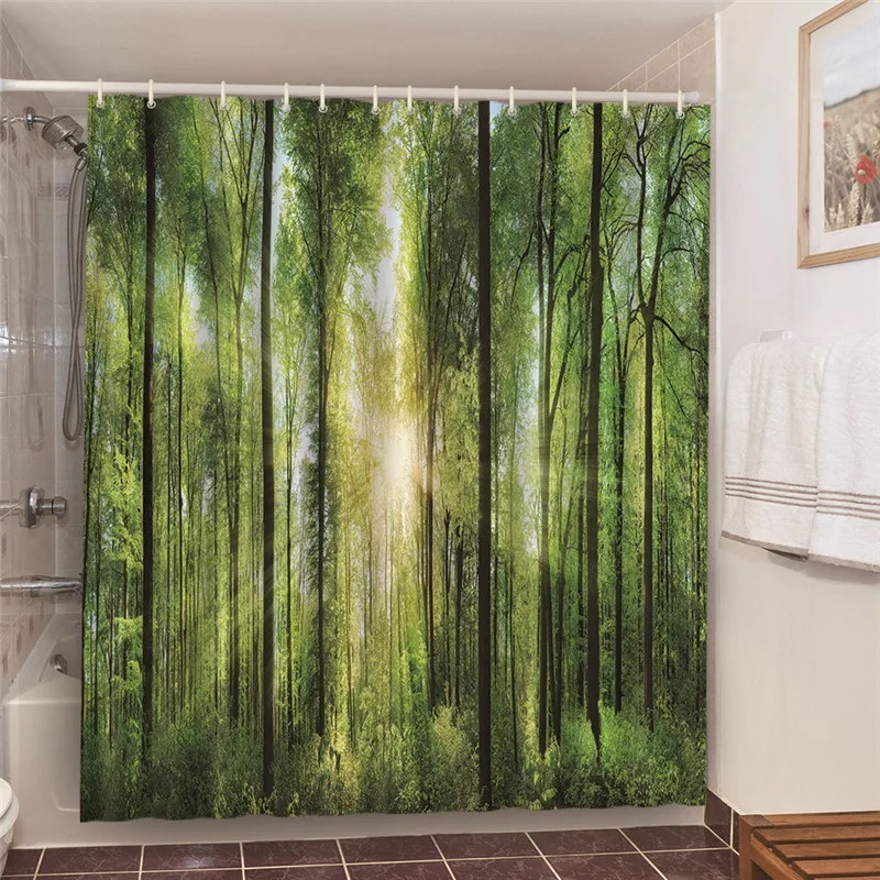 Красивая бамбуковая занавеска для душа с природным ландшафтом леса, ветрозащитное украшение для ванной комнаты, мебель для дома
