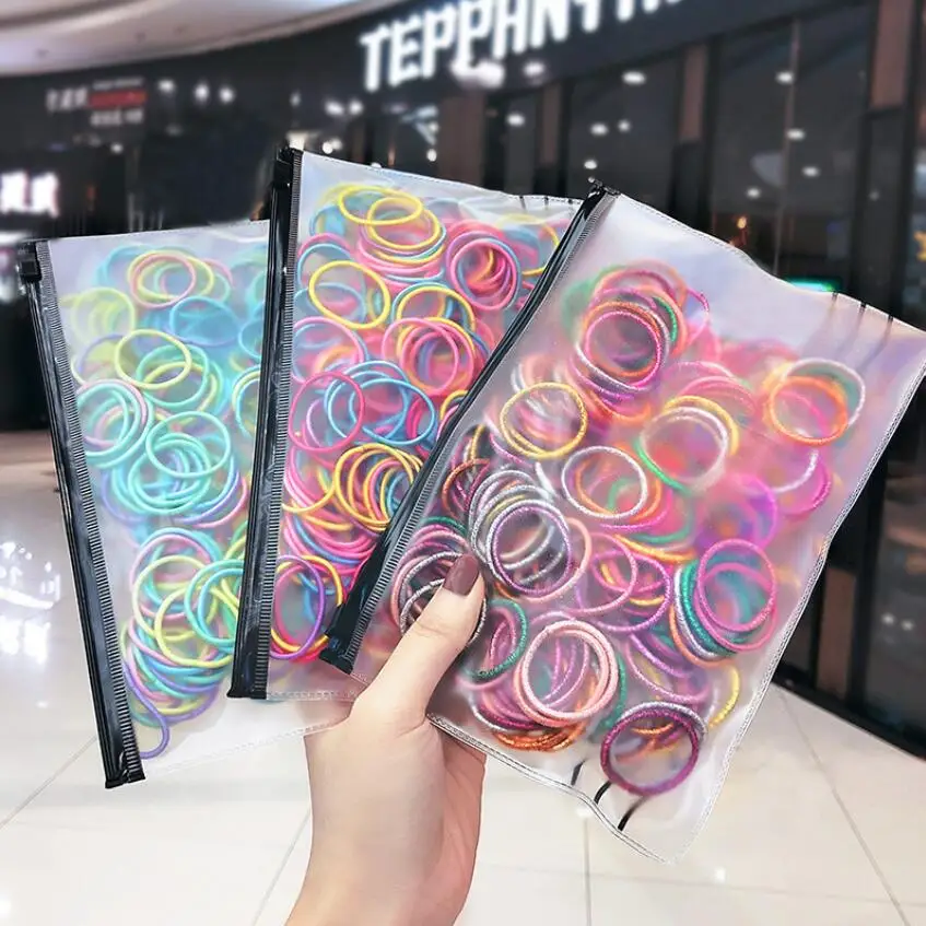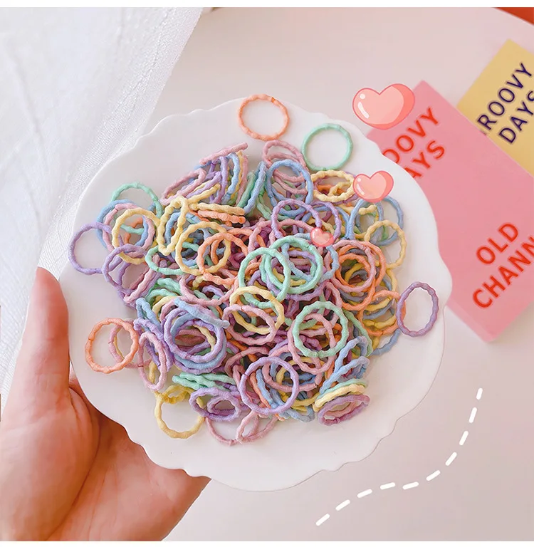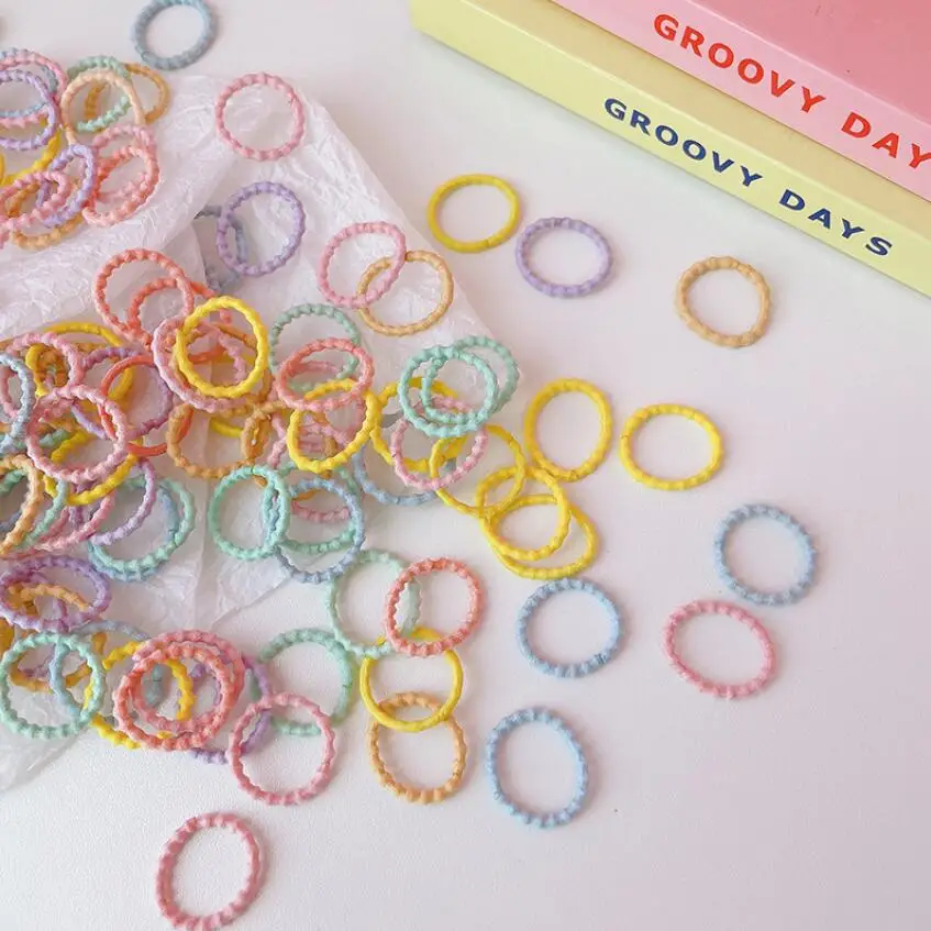 100 Детские милые яркие Однотонные эластичные резинки для волос в мультяшном стиле, милые резинки для девочек, детские аксессуары для волос