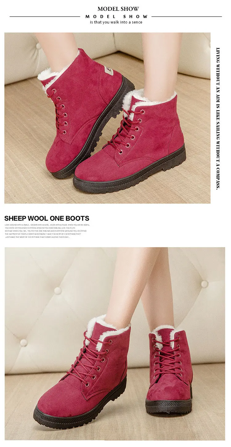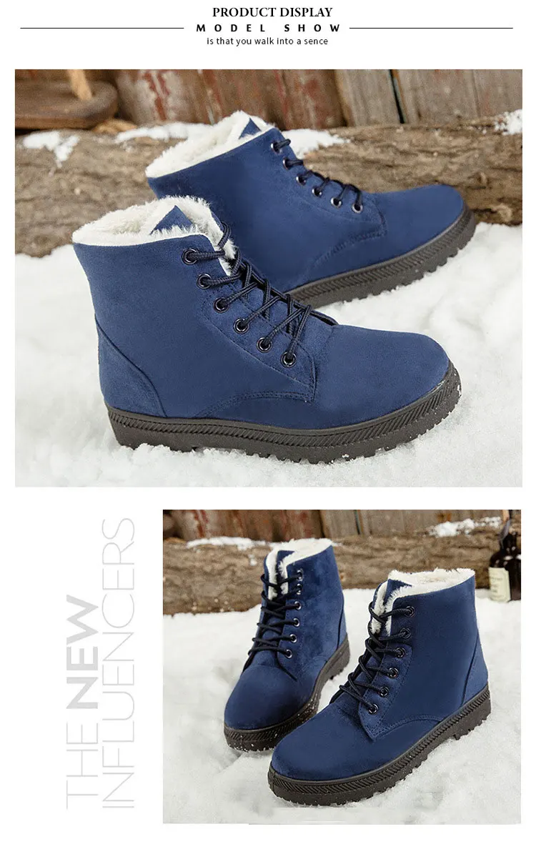 Ботинки женские зимние на шнуровке, Нескользящие плюшевые меховые б...
