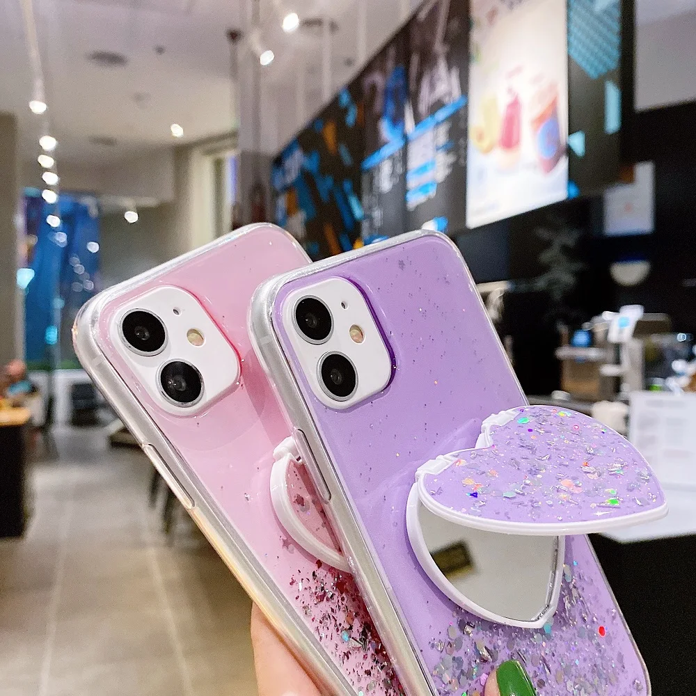 Блестящий Прозрачный чехол для OPPO Reno 6 5 4 3 2 Ace SE Z K F Lite Pro Plus с зеркальной подставкой и эпоксидной смолой