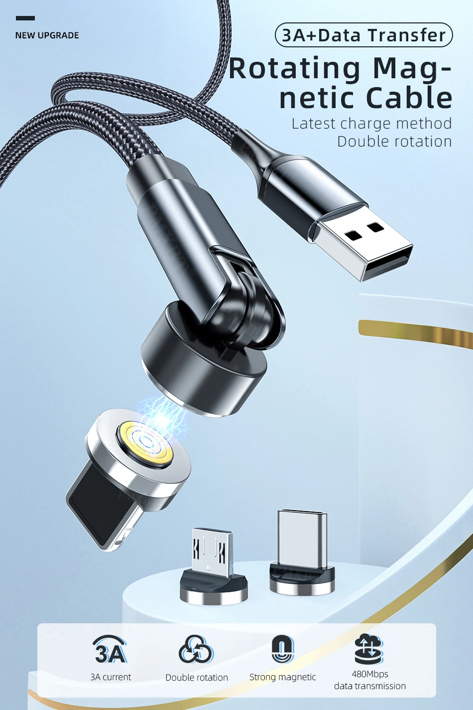 Магнитный кабель с поворотом на 540 градусов, 3 А, кабель для быстр...