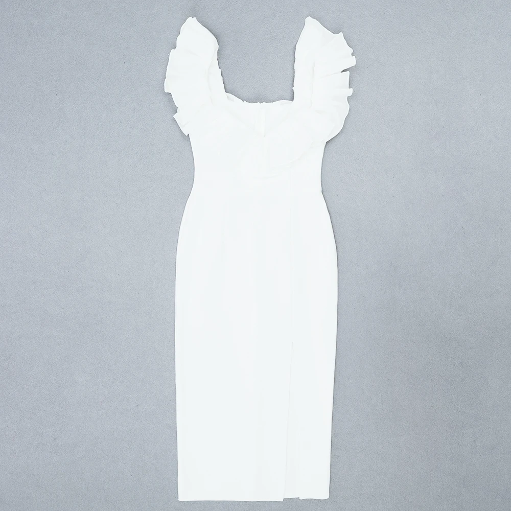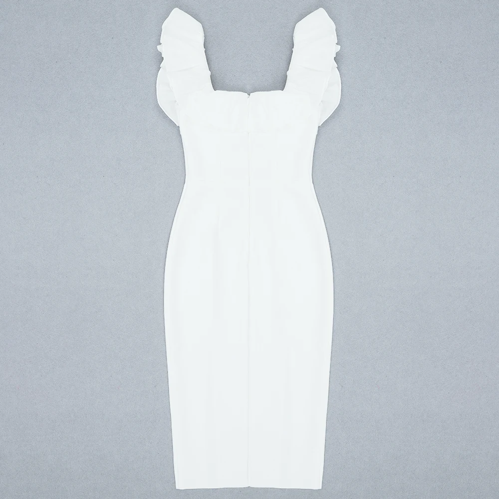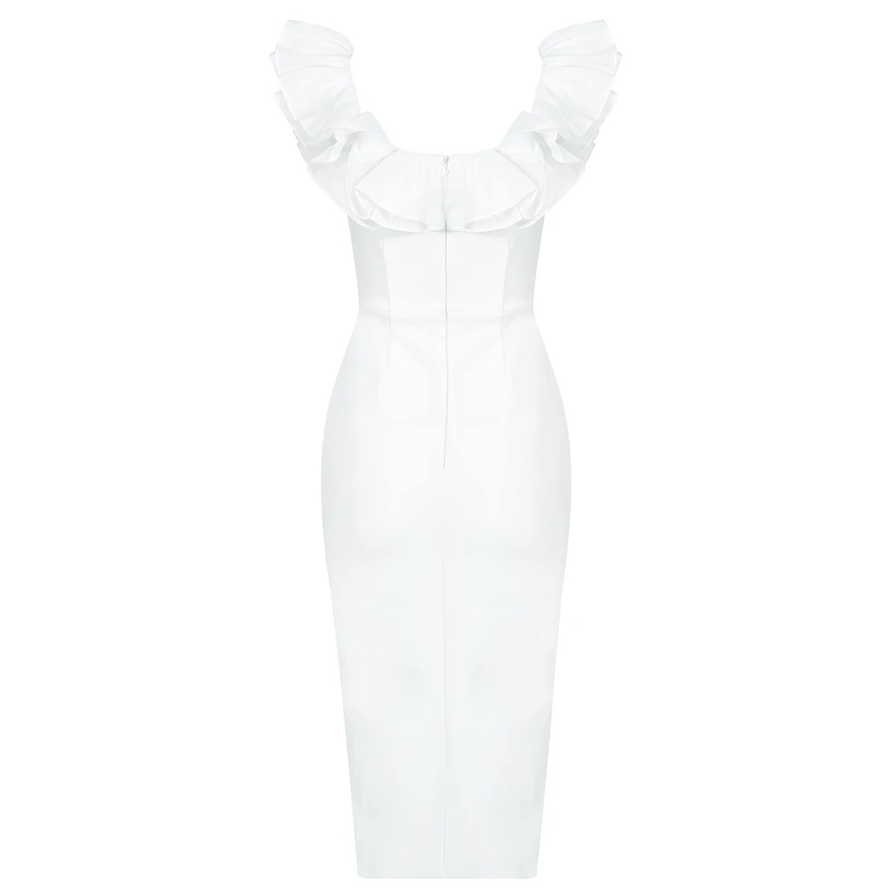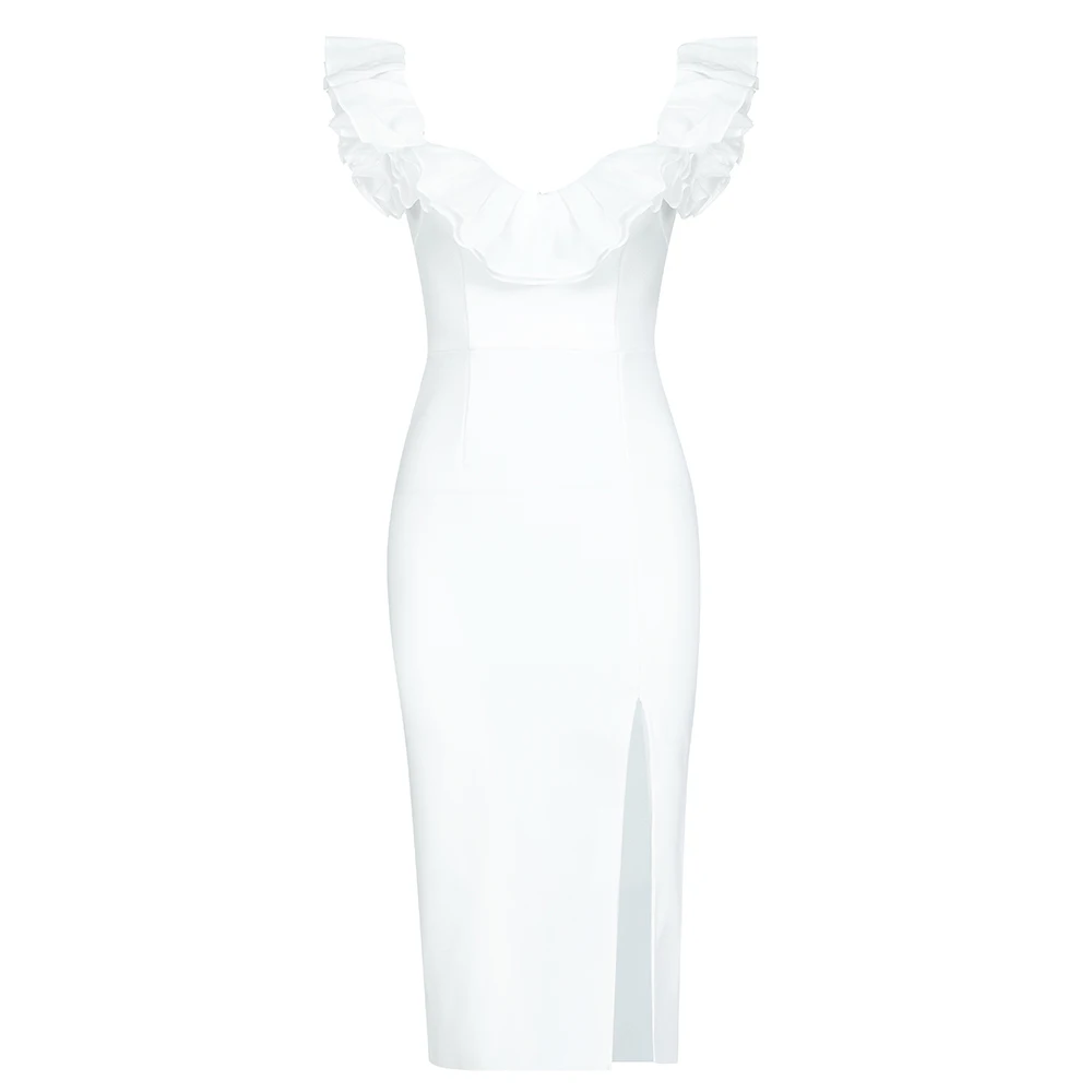 Женское Бандажное облегающее платье, женское белое элегантное платье с V-образным вырезом и оборками, вечернее Клубное сексуальное праздничное платье без рукавов