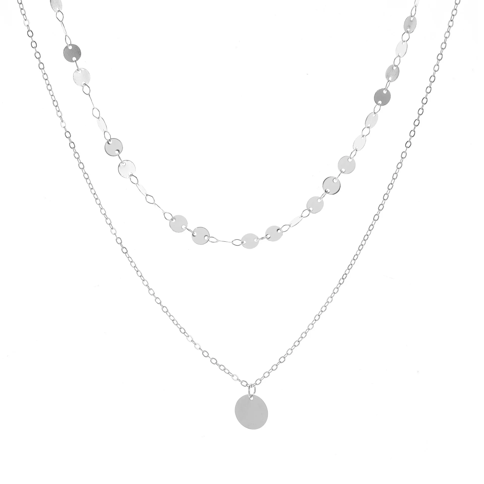 Женское Двухслойное ожерелье с кулоном из меди, ручной работы, с блестками, позолоченная цепочка, Модная бижутерия, цепочка до ключиц, 2021