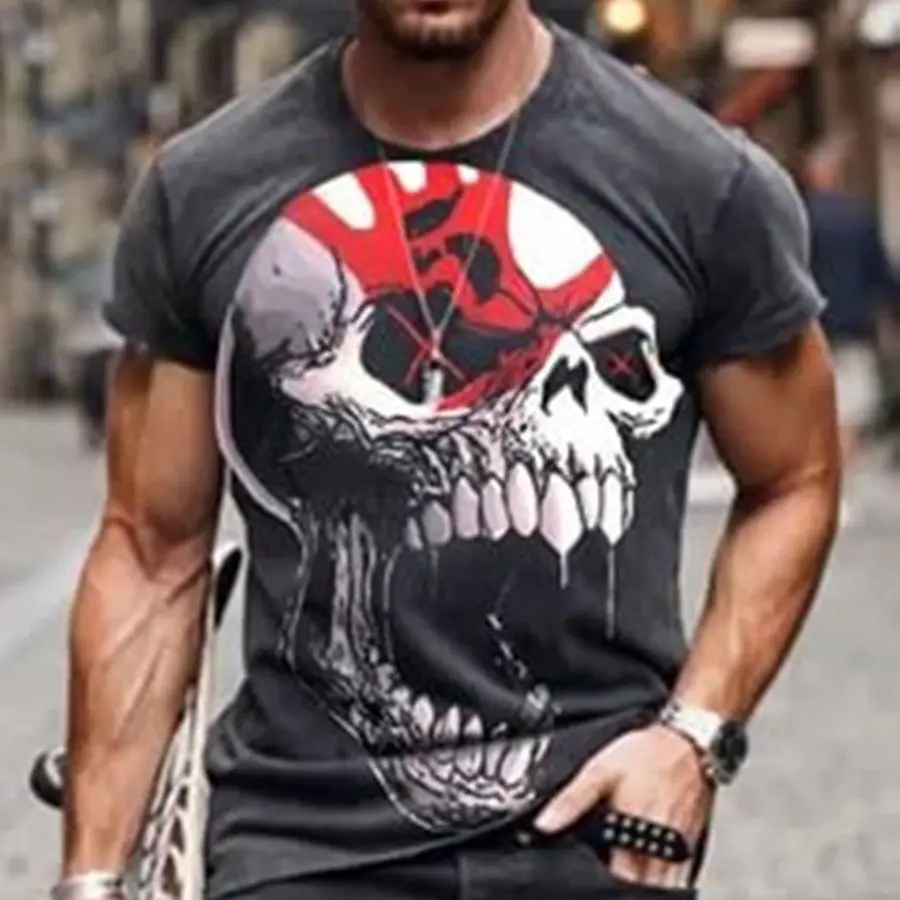 Новая летняя мужская футболка с черепом, летний топ в стиле Дортмун...