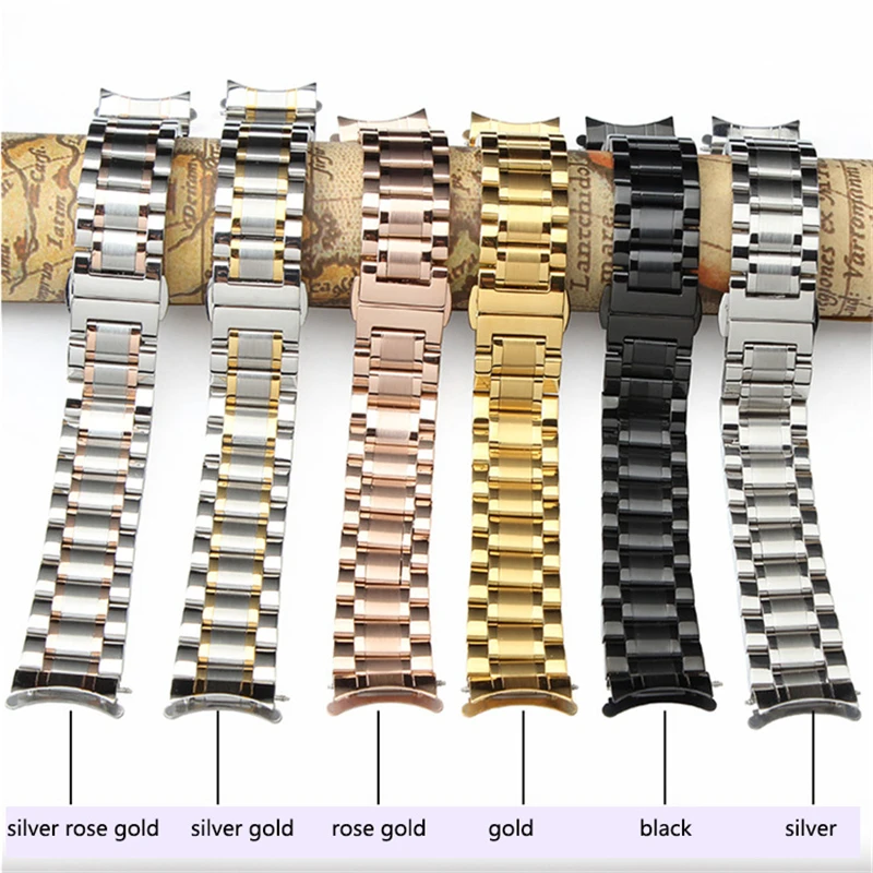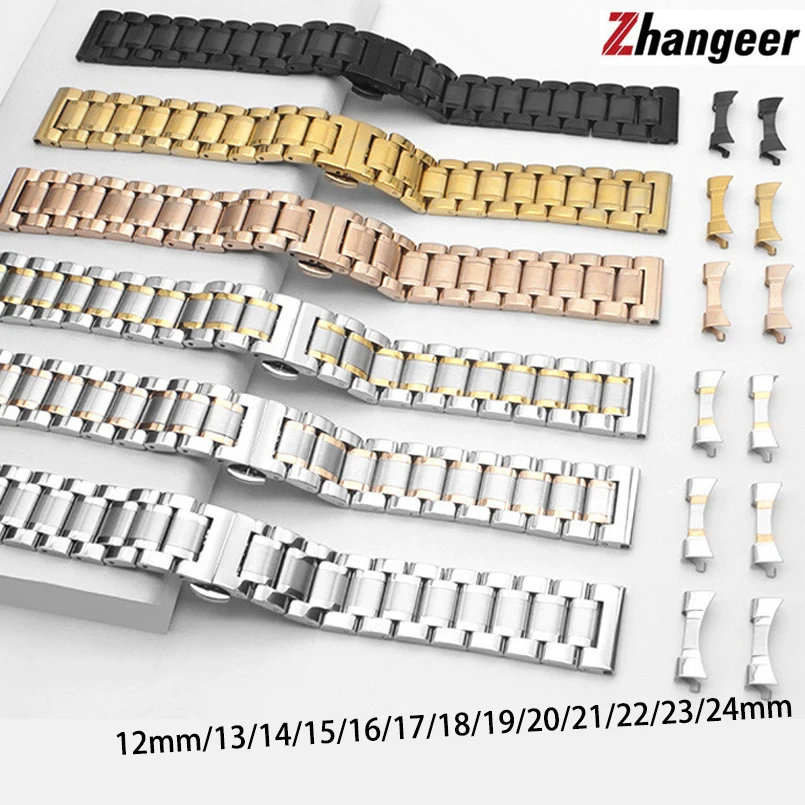 Ремешок для часов с изогнутым концом, металлический браслет из нержавеющей стали, 14 мм, 16 мм, 17, 18 мм, 19, 20 мм, 21 мм, 22 мм, 23, 24 мм, плоский интерфейс
