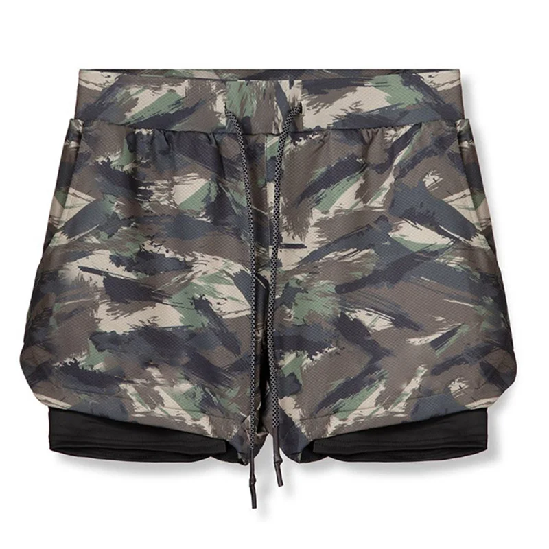 Мужские камуфляжные шорты для бега, 2 в 1, быстросохнущие спортивные шорты для бега и тренировок, мужские спортивные шорты, 2021