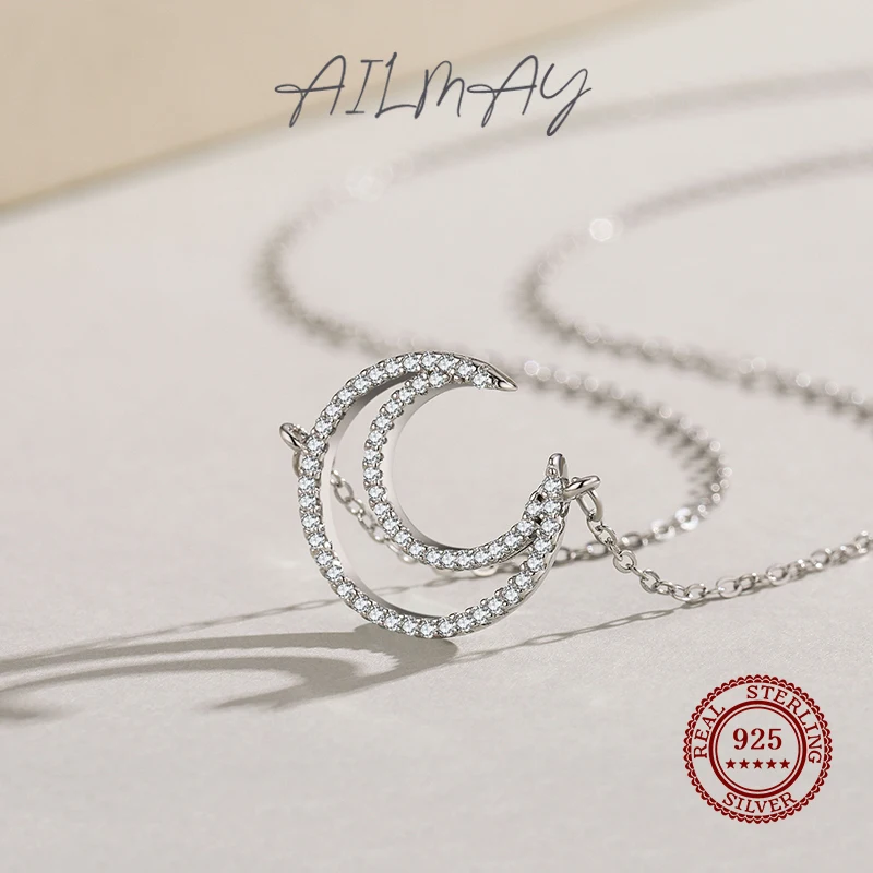 Ailmay Настоящее серебро 925 пробы, простое ожерелье с подвеской в виде полумесяца для женщин, минималистичное изящное ювелирное изделие