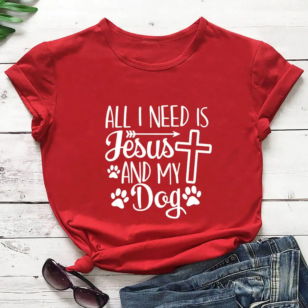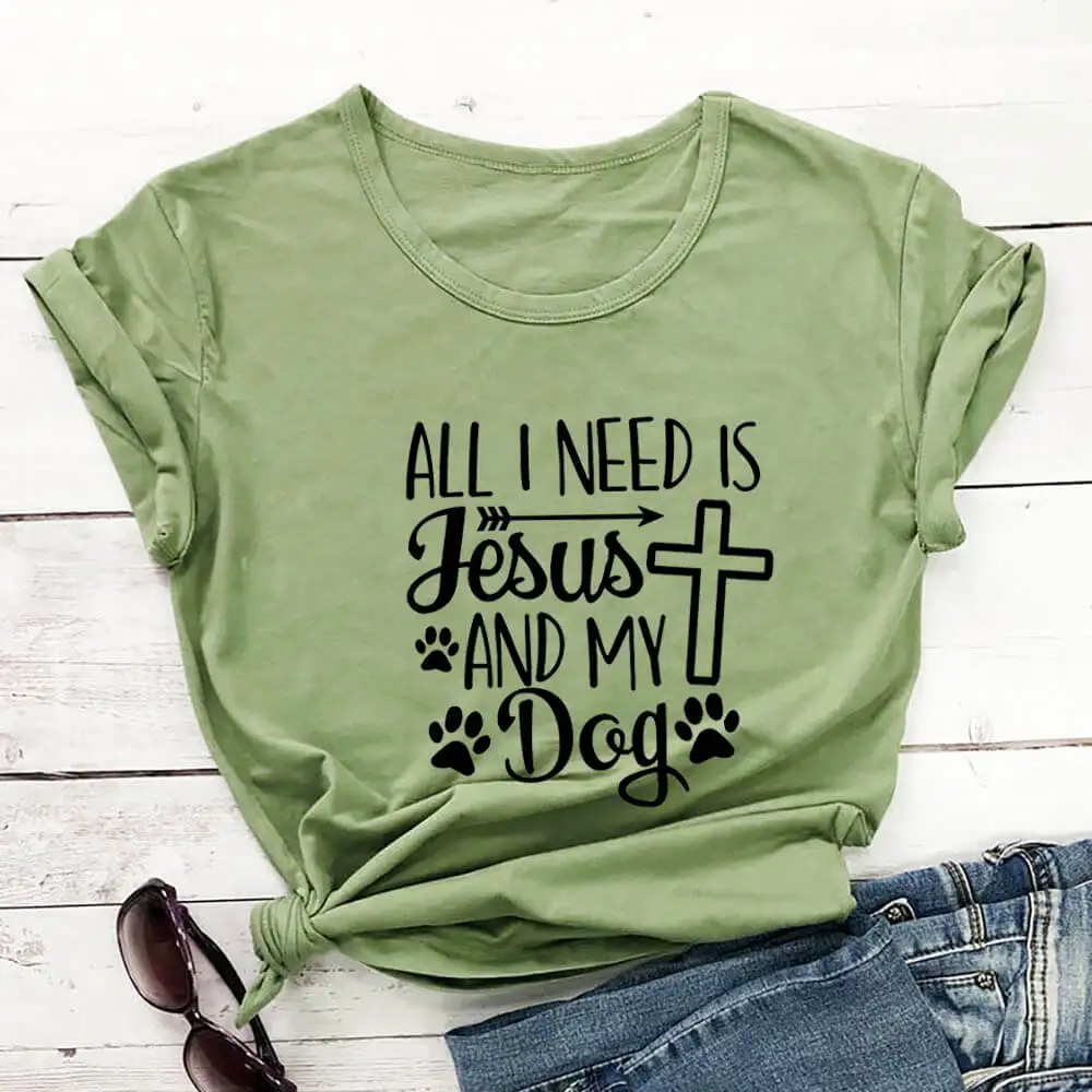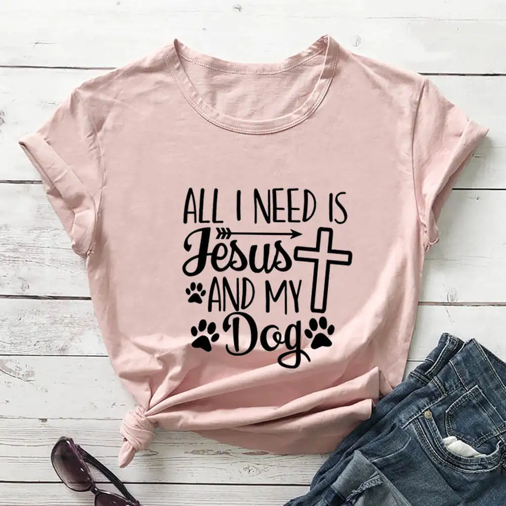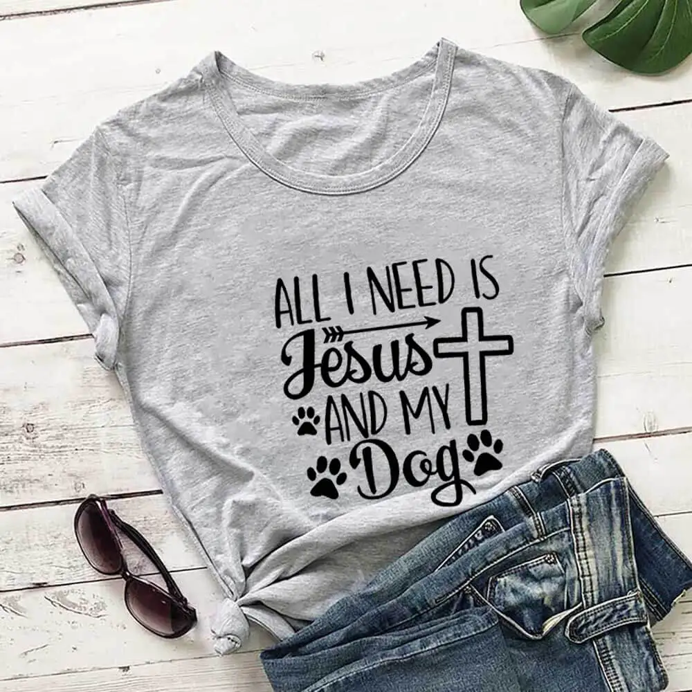 Женская футболка из 100% хлопка с принтом, с изображением Иисуса и собаки, повседневная, с коротким рукавом, унисекс, в христианском стиле, футболка для любителей собак