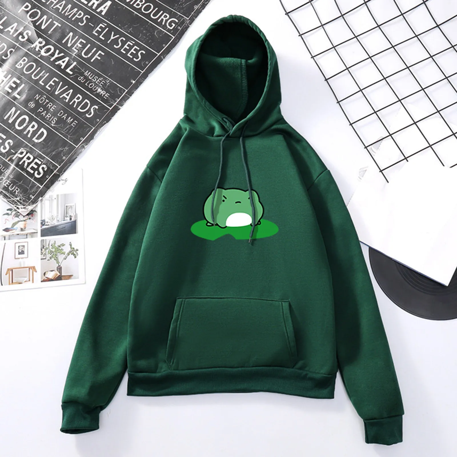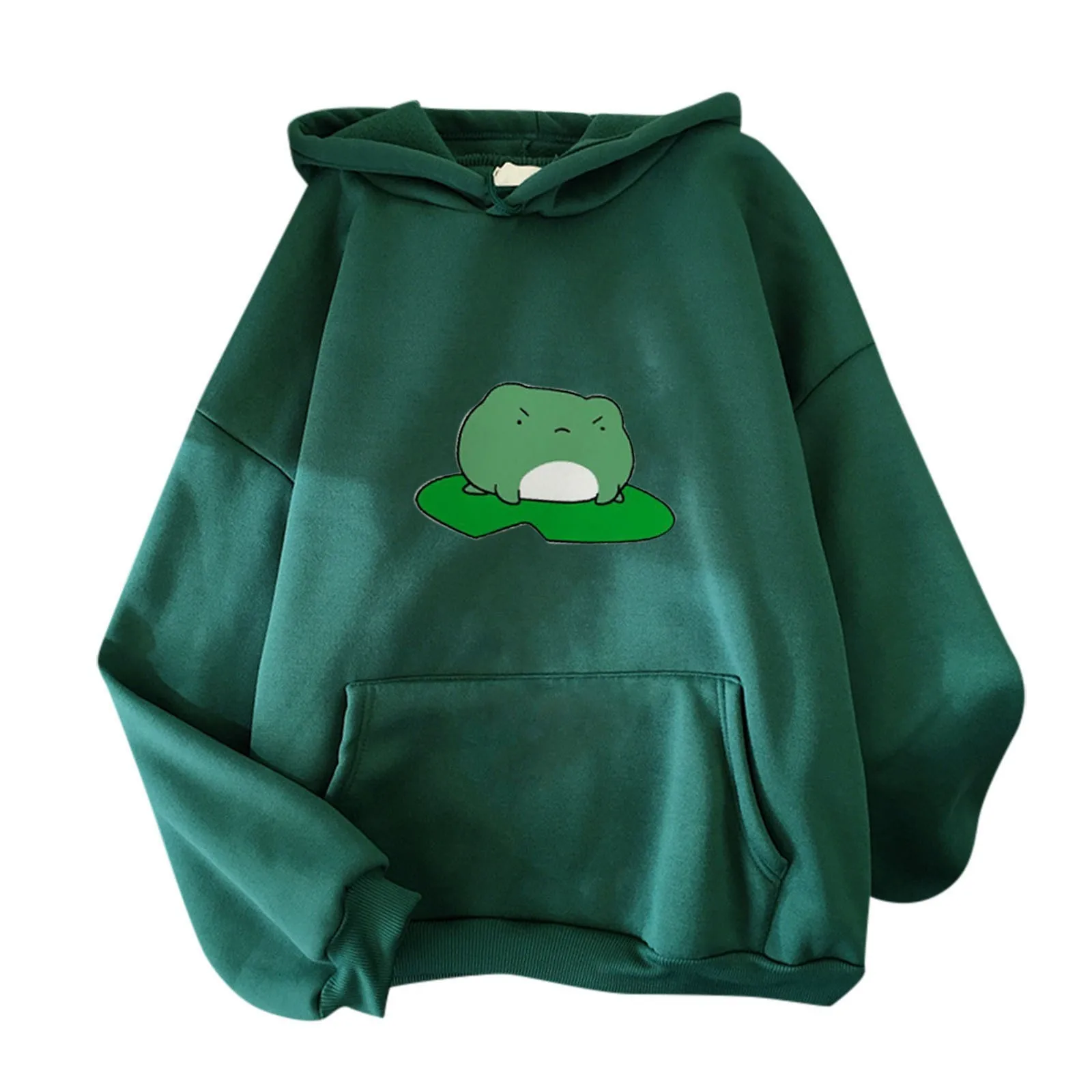 Женская толстовка с капюшоном, зеленая Толстовка с длинным рукавом и мультяшным принтом, осень 2021