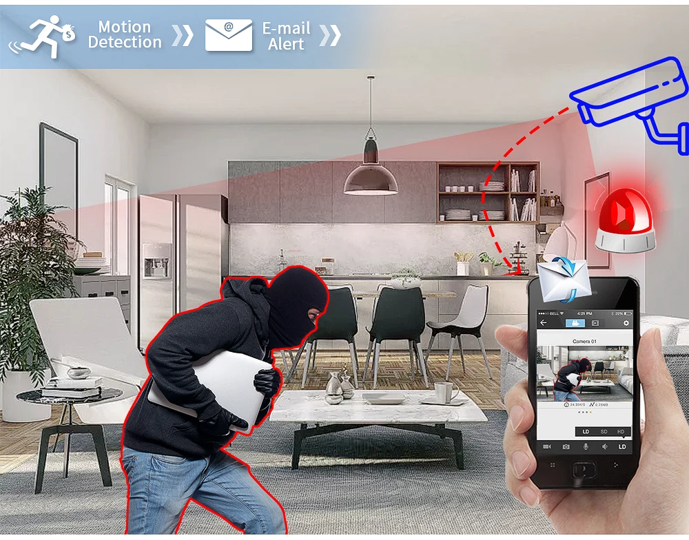 Можно настроить область, которую вы хотите контролировать, когда она срабатывает, она отправит сообщение на вашу электронную почту, вы можете получить информацию из первых рук, независимо от того, когда и где вы находитесь.