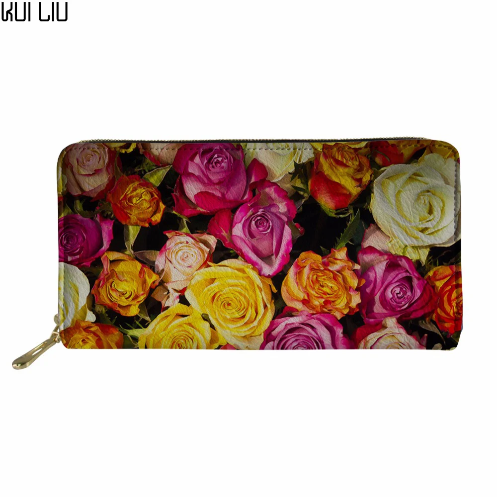 Kui Liu женский кошелек с цветочным принтом розы, женский кошелек, Дамские кошельки из искусственной кожи, Женский кошелек, чехол для карт, дешевый женский клатч