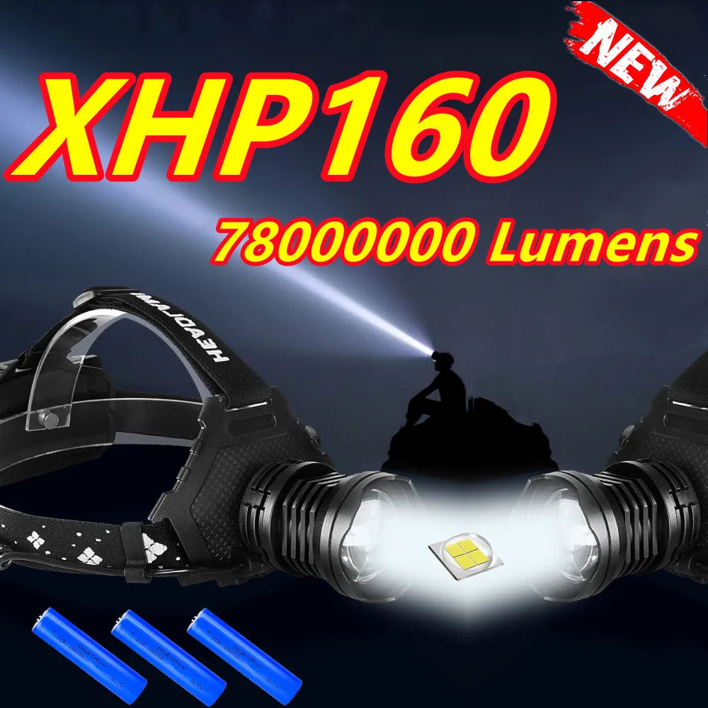 Налобный фонарь XHP160, светодиодный налобный фонарь высокой мощности, 2021, светильник заряжаемый налобный светильник онарь, налобный фонарь с зумом, Usb, 18650