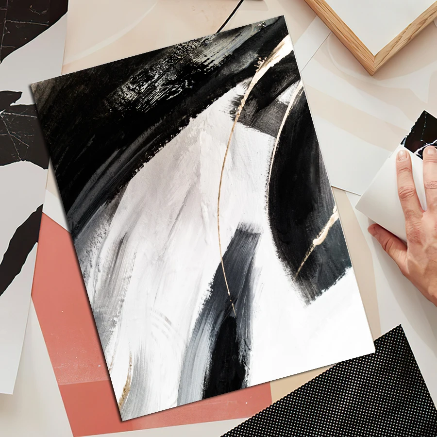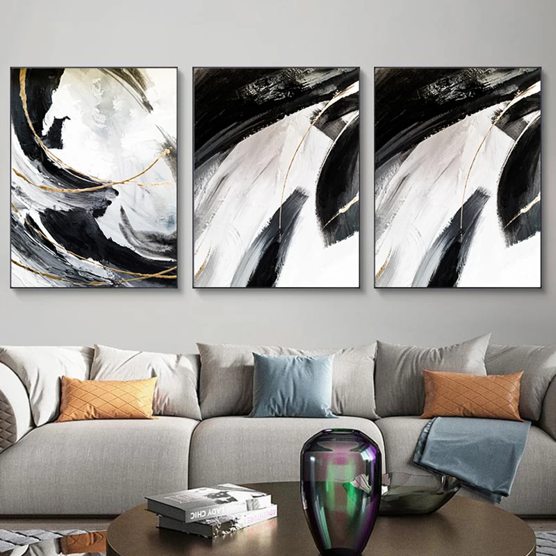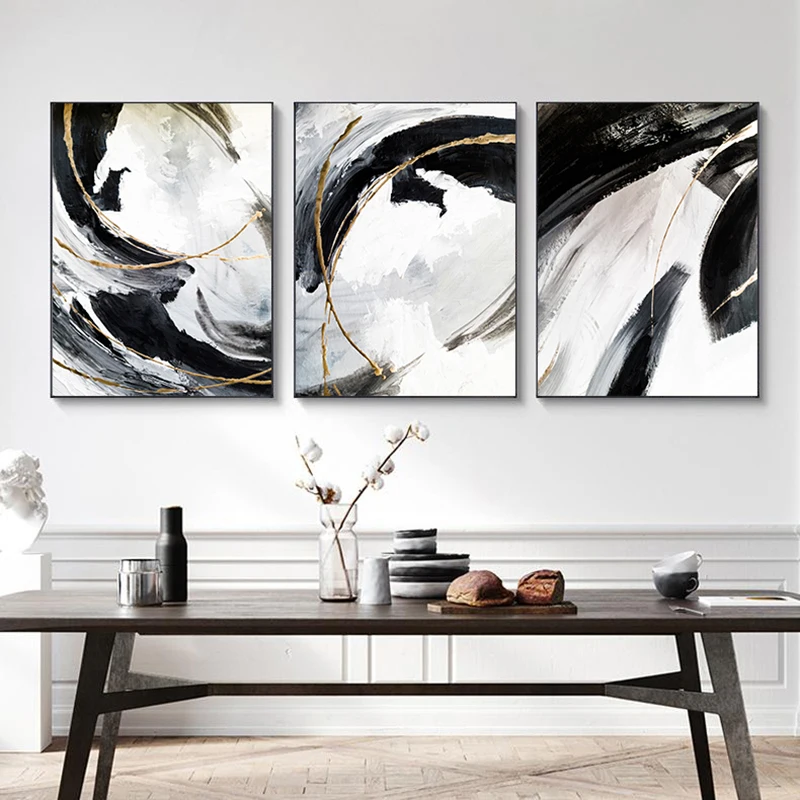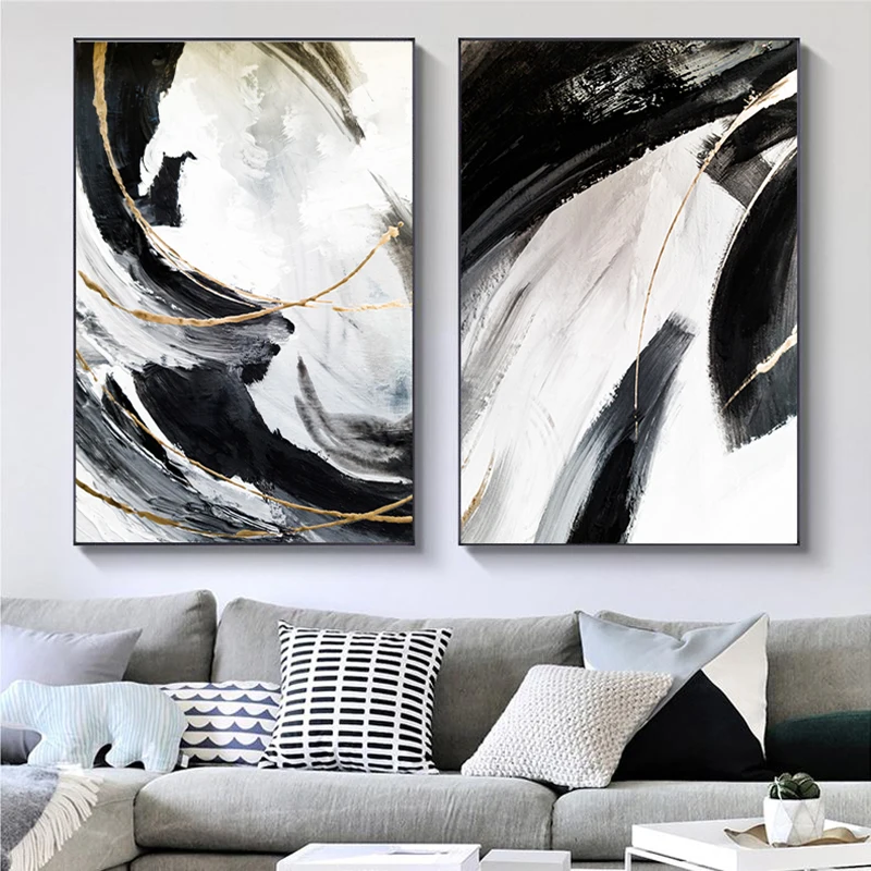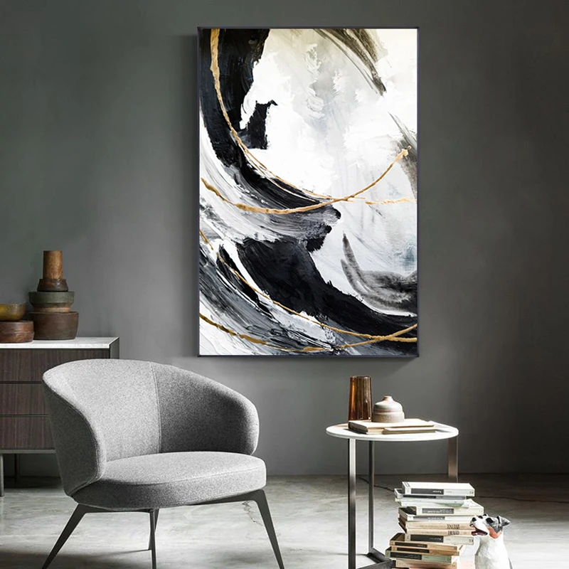 Абстрактная черная, белая, Золотая Картина на холсте, настенное иск...