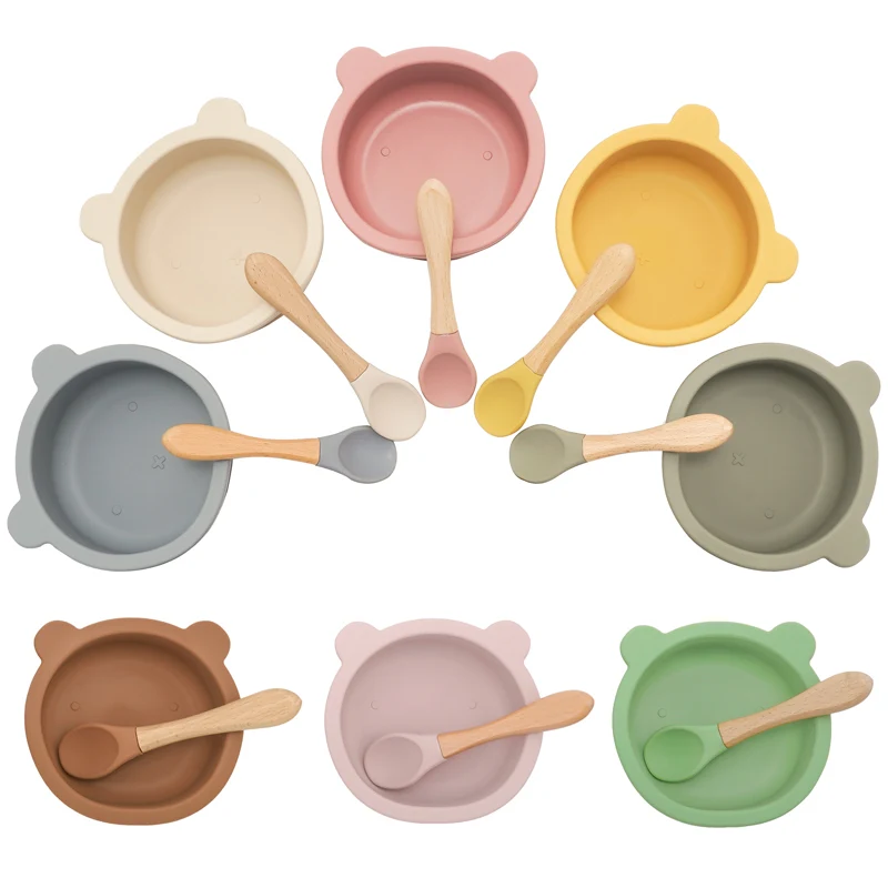 Набор детской посуды, миска для кормления, тарелки для тренировок, тарелки с присоской для младенцев, твердая еда, ложки для новорожденных, детские вещи