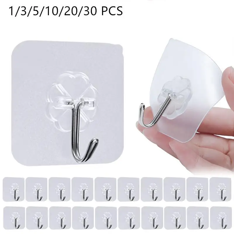 ▲ Универсальные крючки без сверления прозрачные, самоклеющиеся, многоразовые, водонепроницаемые, маслостойкие, не оставляет следов на удалении