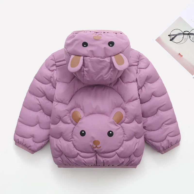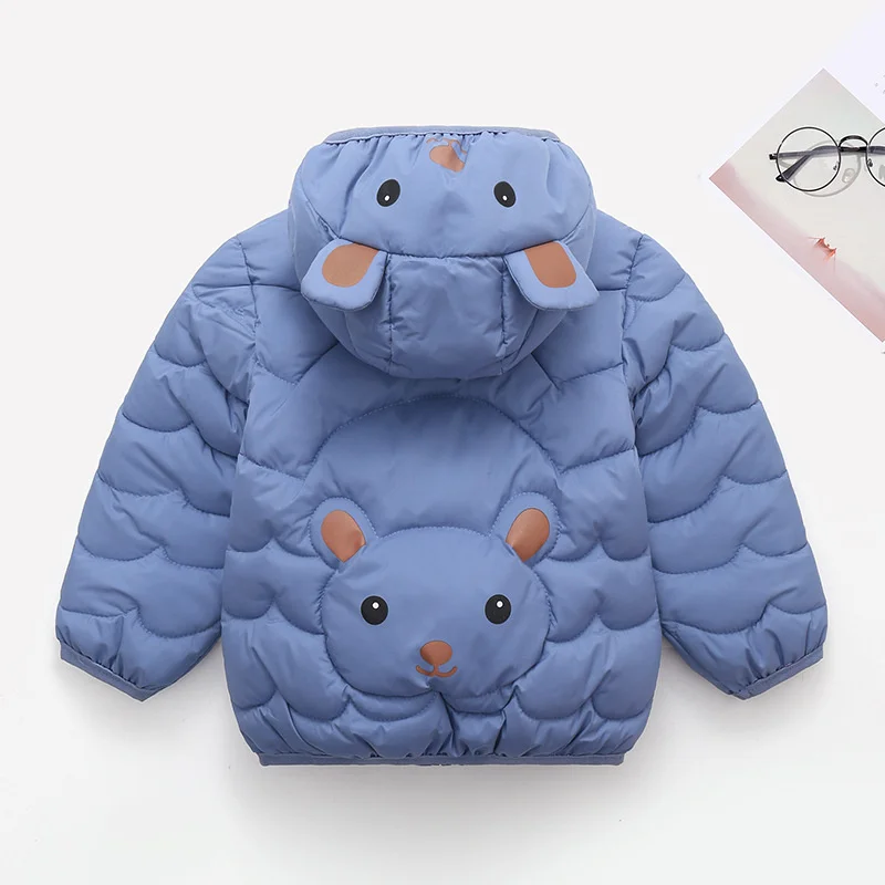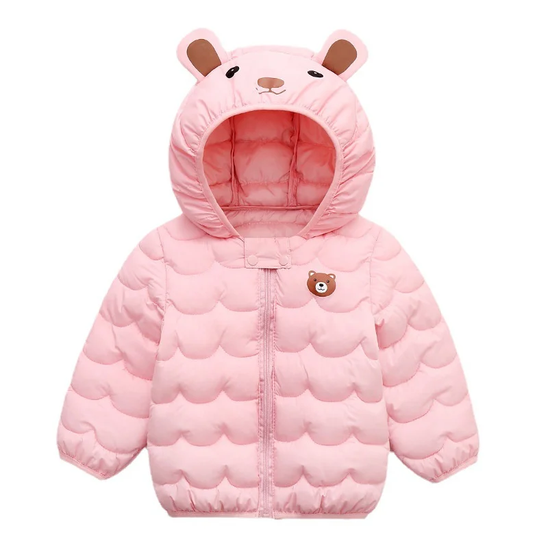 Детская куртка с капюшоном, пальто для маленьких мальчиков и девочек, короткая верхняя одежда с изображением медведя, детские теплые пуховики, тонкие пальто, одежда для детей