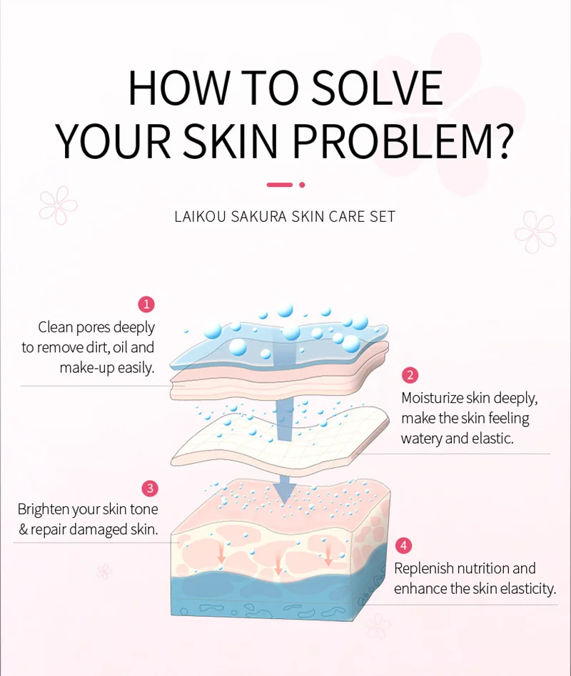 LAIKOU 4 шт. набор для ухода за кожей Сакура очищающее средство тон...