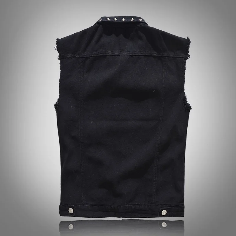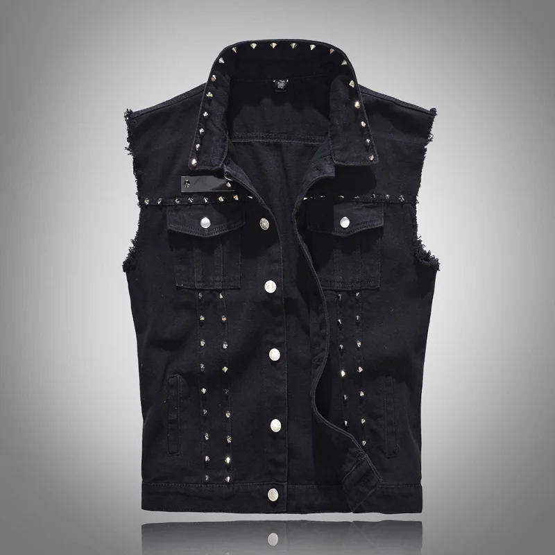 Джинсовая безрукавка мужская с заклепками, приталенный однобортный ...