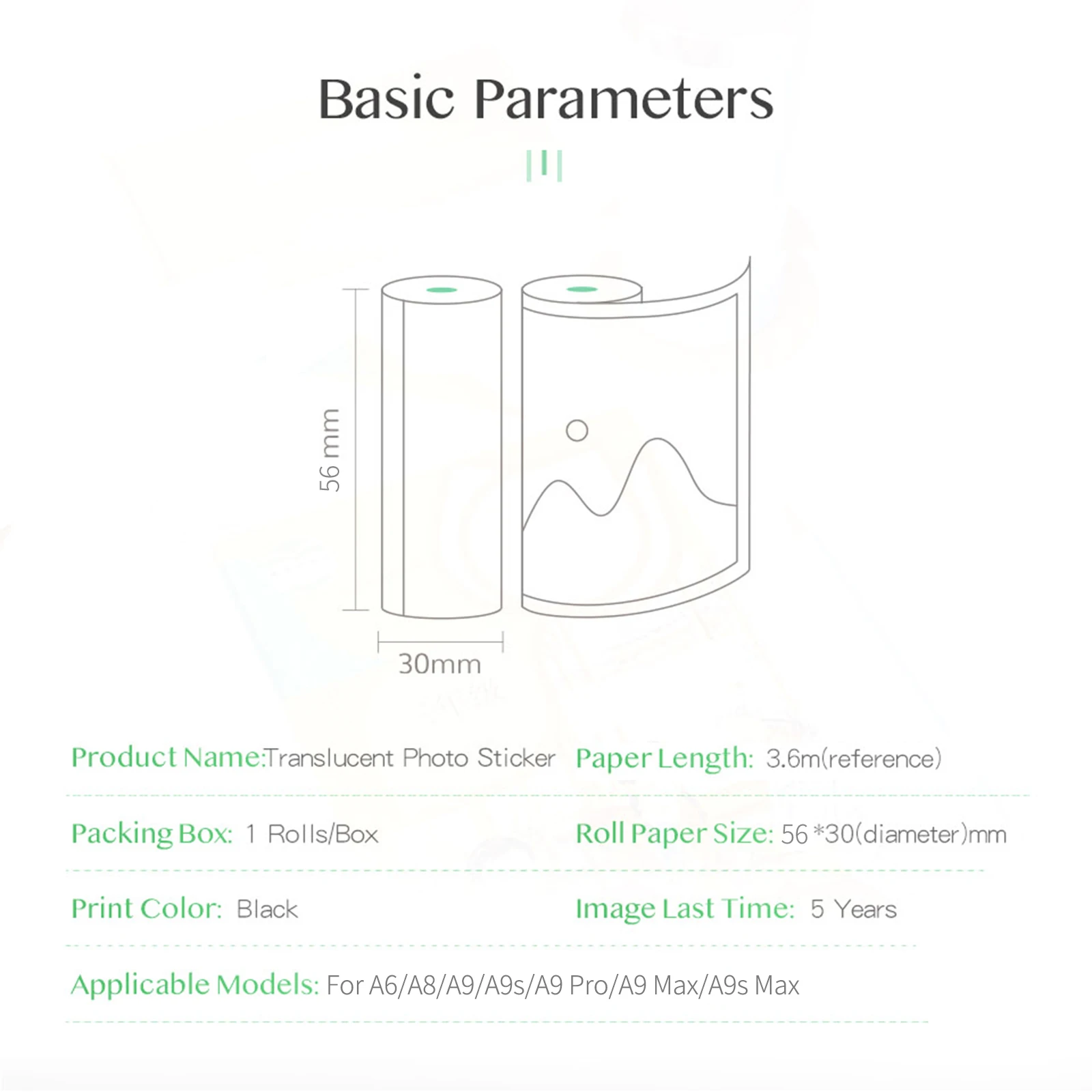 Полупрозрачная фотонаклейка PeriPage, не содержит Бисфенол А, рулон термобумаги, водонепроницаемая клейкая бумага для PeriPage A6A8A9A9sA9 Pro
