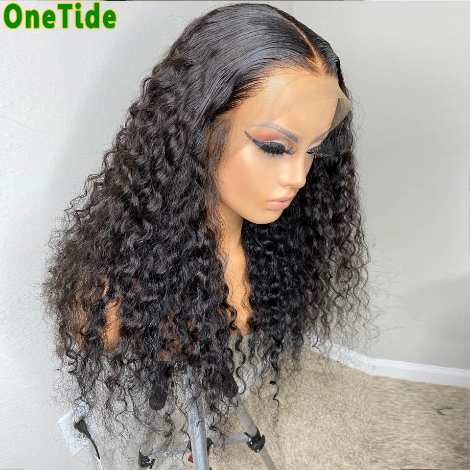 Парик ONETIDE 30 дюймов с глубокой волной, кудрявые, бразильские кудрявые человеческие волосы, парики с T-образной частью, парик с фронтальной застежкой
