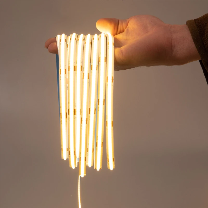 Светодиодная лента COB 12 В, 24 В, мягкая гибкая светодиодная лента 384 светодиодовм, 5 мм, тонкая, 0,5 м, 1 м, 2 м, 3 м, 4 м, 5 м, светодиодная полоса теплого белого света COB для комнаты, спальни