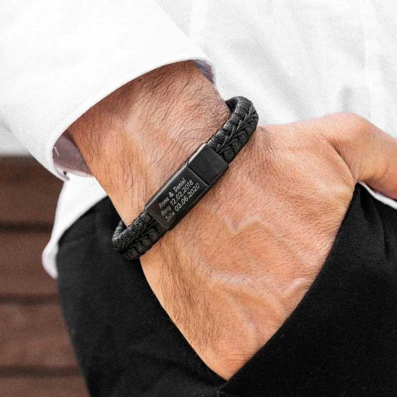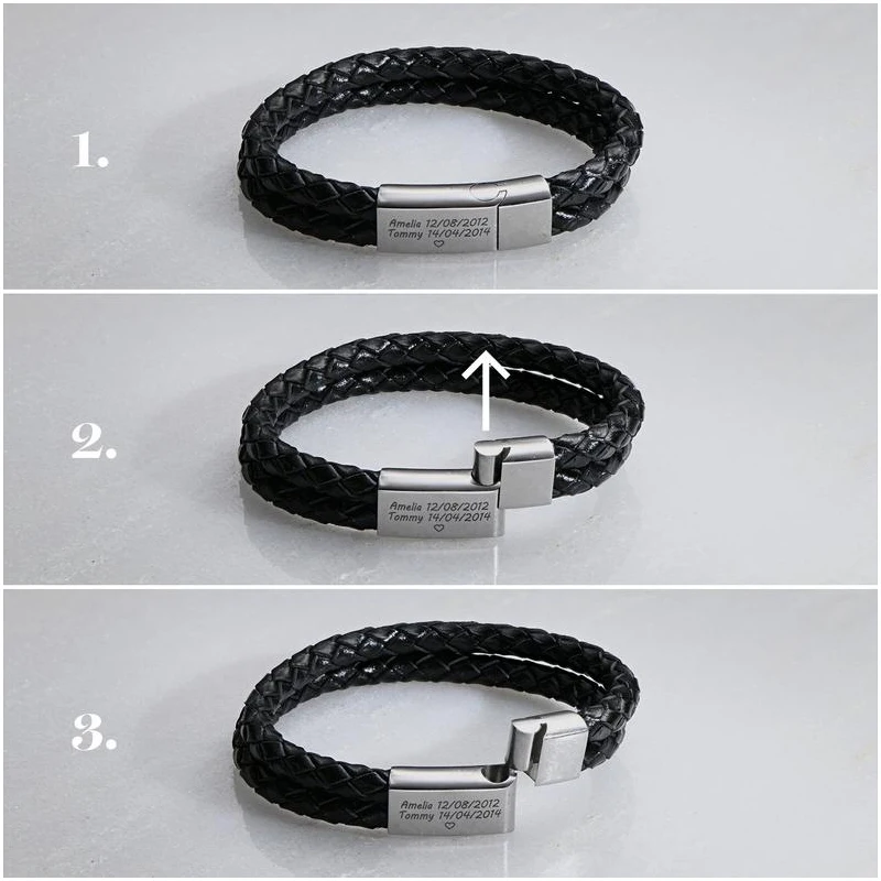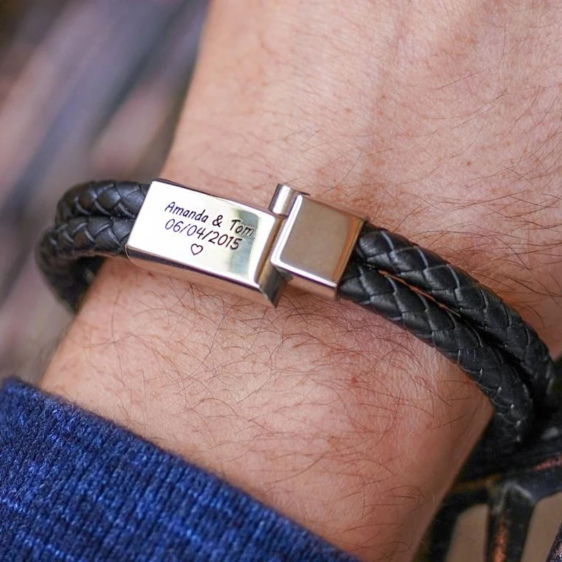 Браслет мужской кожаный, с гравировкой на заказ, с именем, датой, сильные магнитные замочки