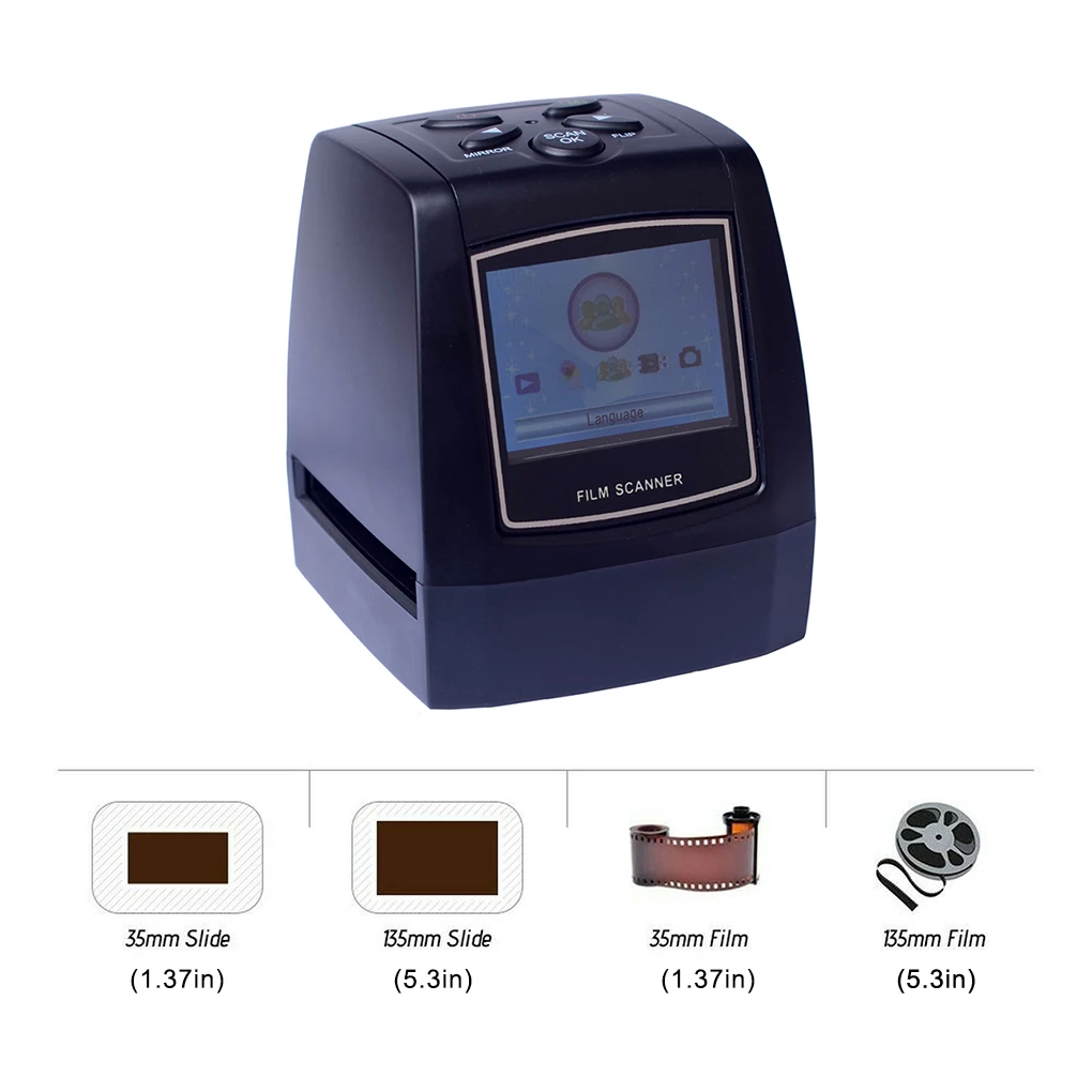 Этот ЖК-сканер может превратить пленку в формат JPEG за считанные секунды и совместим с 35 мм/135 мм положительными, отрицательными и скользящими пленками.