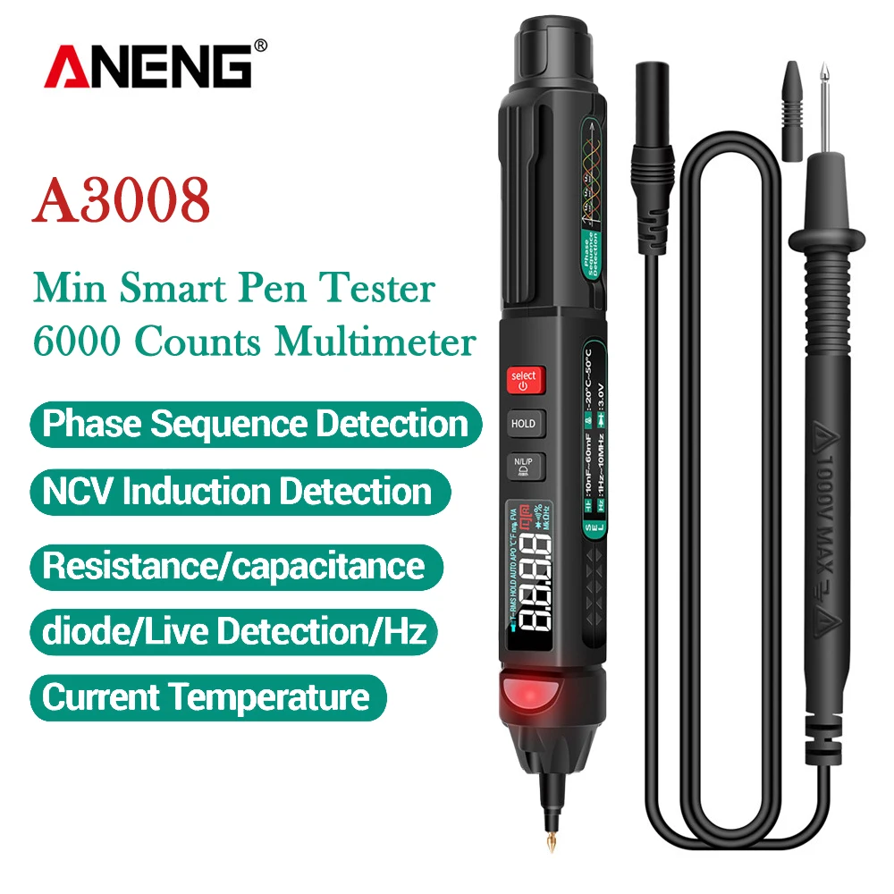 Цифровой тестер A3008 PRO A3007 PRO, 6000 отсчетов, интеллектуальный профессиональный мультиметр, датчик напряжения, Бесконтактный вольтметр