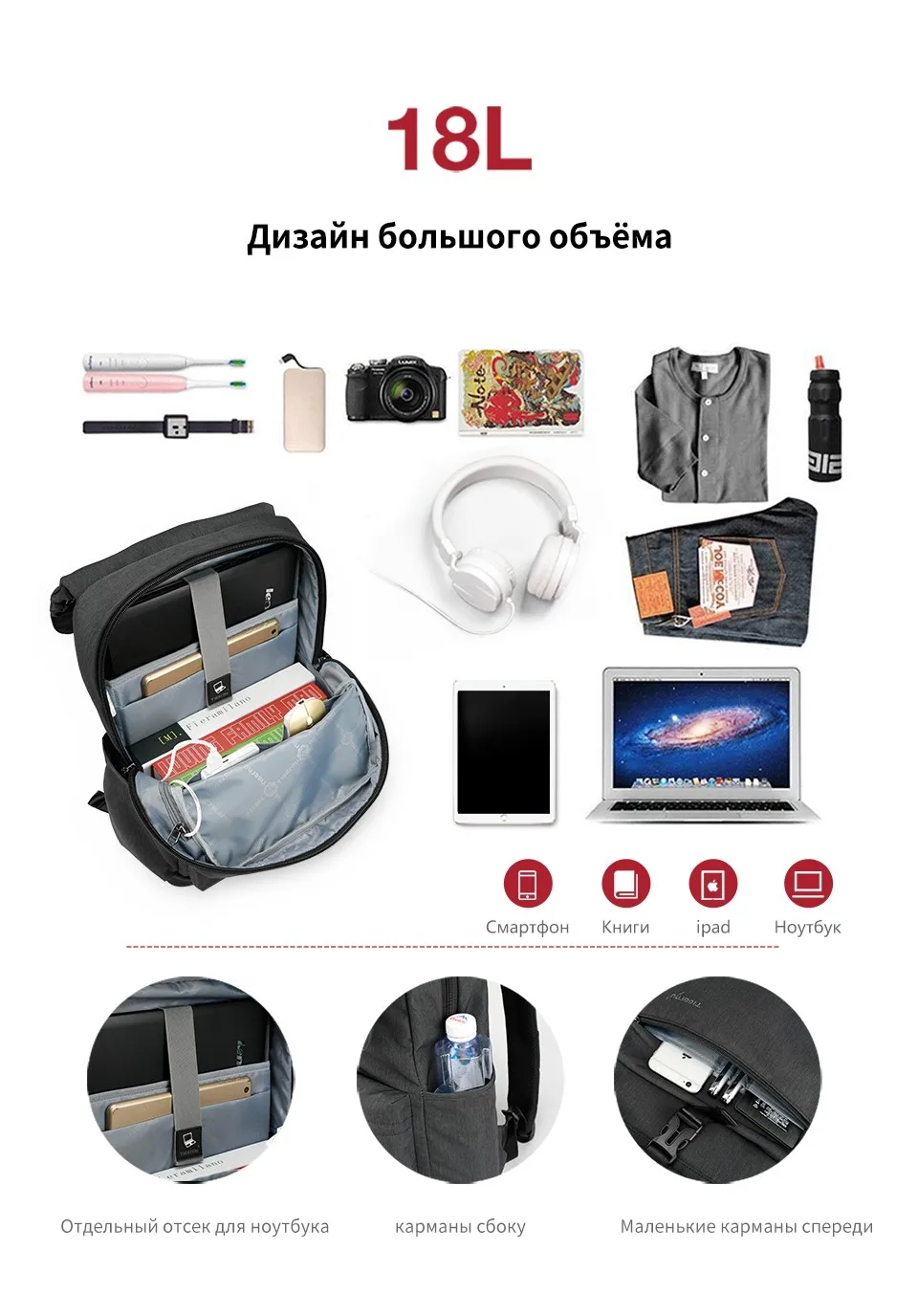 Рюкзак отличного качества, в комплекте беспроводная зарядка, убирающаяся в специальный карман (сомнительно, конечно, заряжать по беспроводу внутри рюкзака - из-за выделяющегося тепла может деградировать аккумулятор смартфона - но плата достаётся, и её можно использовать «на воздухе»), имеется возможность заряжать в руках, держа павербанку в рюкзаке. Карманов много. Входят ноутбуки 16.1” (Honor Pro 16.1) да и 17" думаю полезет, если не в основной карман, так в спинной. Спинной карман - вообще огонь. В целом доволен и продуктом и брендом - очень качественно и удобно.